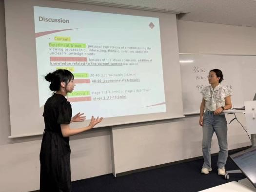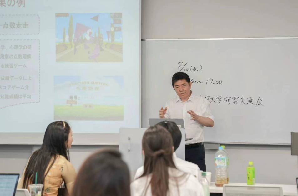 北京大学学习科学实验室执行主任尚俊杰教授同样对欧亿体育、北京大学学习科学实验室进行了介绍。来自北京大学教育技术系的张鹏同学、李姗姗同学以及曾就读于北京大学教育技术系、现留学哥伦比亚大学的曾嘉灵同学分别就《虚拟学习环境》、《生成式AI与教师专业发展》、《通过生理信号理解学生实时认知状态》三个主题进行了分享,得到了东京大学师生的一致好评。