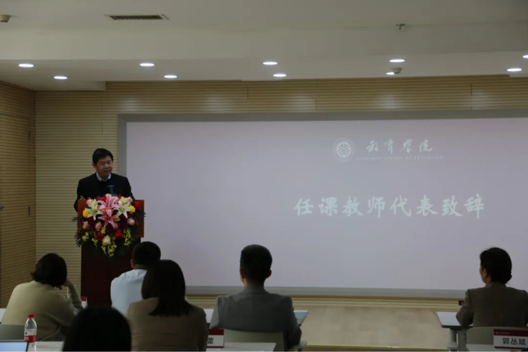 王颖霞教授致辞中提到做好教育工作的两点,一点便是热爱,爱专业,爱学生,另一点便是专业的提升,既有原学科知识的提升,也有整个教育教学理念的提升。她鼓励同学们将科学教育与人文教育结合起来,让更多的学生能够收获幸福。