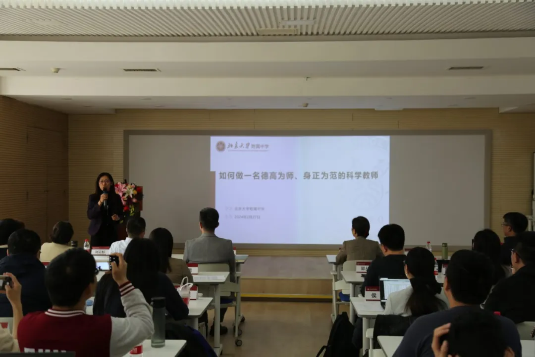 秦蕾老师致辞以“如何做一名德高为师,身正为范的科学教师”为主题,分享了她所理解的科学魅力和背后的科学家精神,结合实际案例,向同学们传递“保护每一位学生的好奇心”的教育理念。