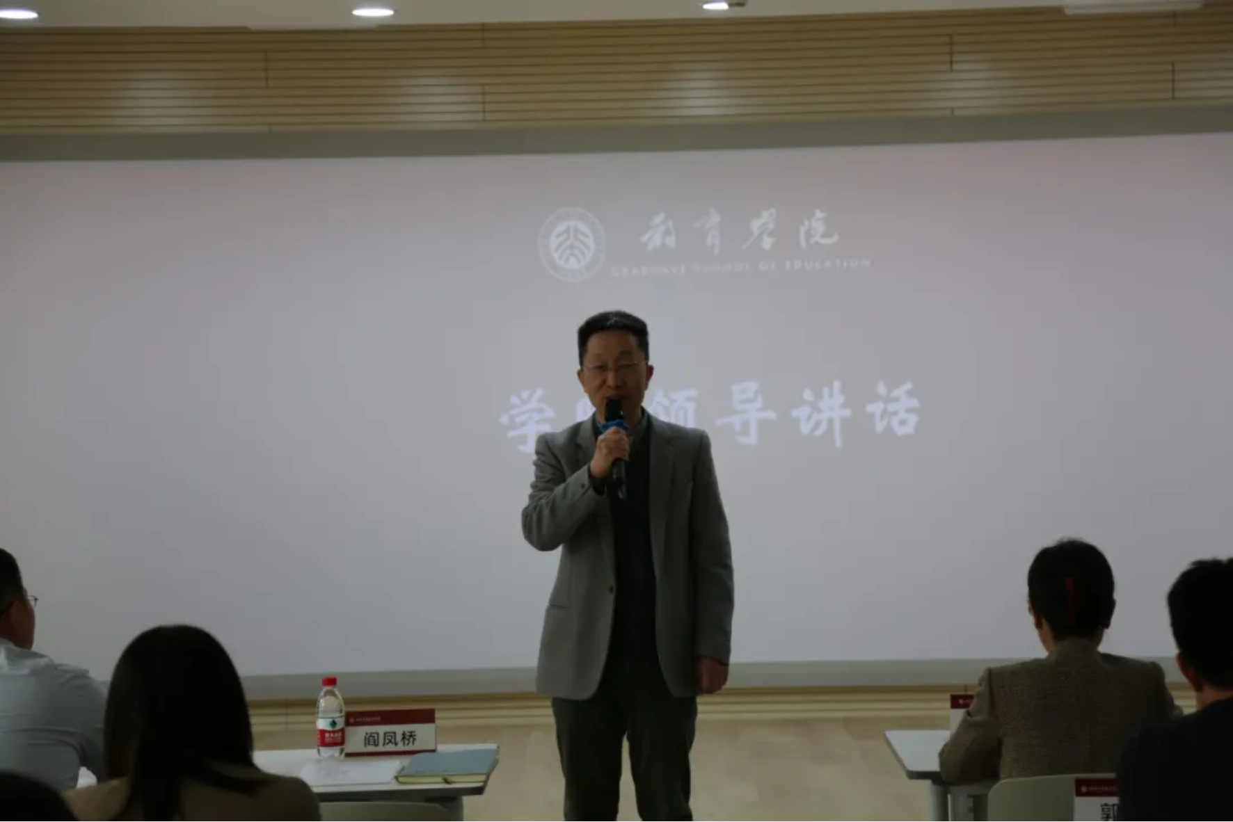 为落实党的二十大报告有关实施科教兴国、人才强国的战略目标,2023年7月教育部发布了《关于实施国家优秀中小学教师培养计划的意见》(简称“国优计划”),北京大学作为首批30家试点高校之一,已完成首届“国优计划”遴选工作,进入培养阶段。2024年2月27日,北京大学首届“国优计划”开班典礼在教育学院112报告厅举行。研究生院副院长肖云峰,教育学院院长阎凤桥、理科院系学科导师代表王颖霞、项目专业负责人刘云杉,学院导师代表文东茅、任课教师代表尚俊杰、实习基地代表北大附中副校长秦蕾、从教校友代表北京市十一学校汪峡以及班主任郑蕾出席并致辞。北京大学研究生院专业学位办副主任常铖、教育学院党委书记张晓黎、任课教师郭丛斌、魏然,以及首届“国优计划”学生共同参会。教育学院副院长哈巍主持开班典礼。