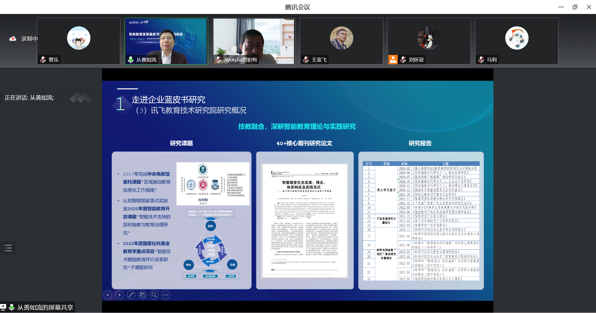 在最后的总结中,刘教授指出:企业是国家科技体系中不可缺少的力量,是连接产品、用户、高校的核心枢纽;智能教育发展蓝皮书研究充分体现了“研究—生产—应用”一体化的智能教育发展新生态。