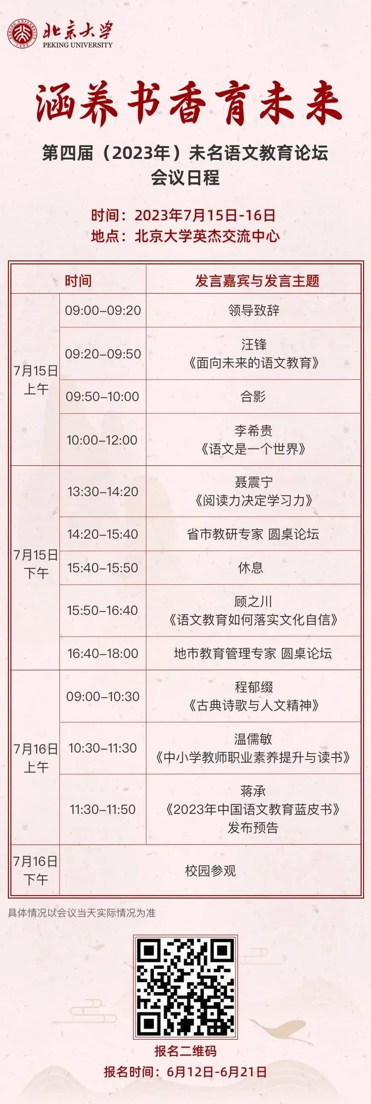 2023年第四届未名语文教育论坛报名通知