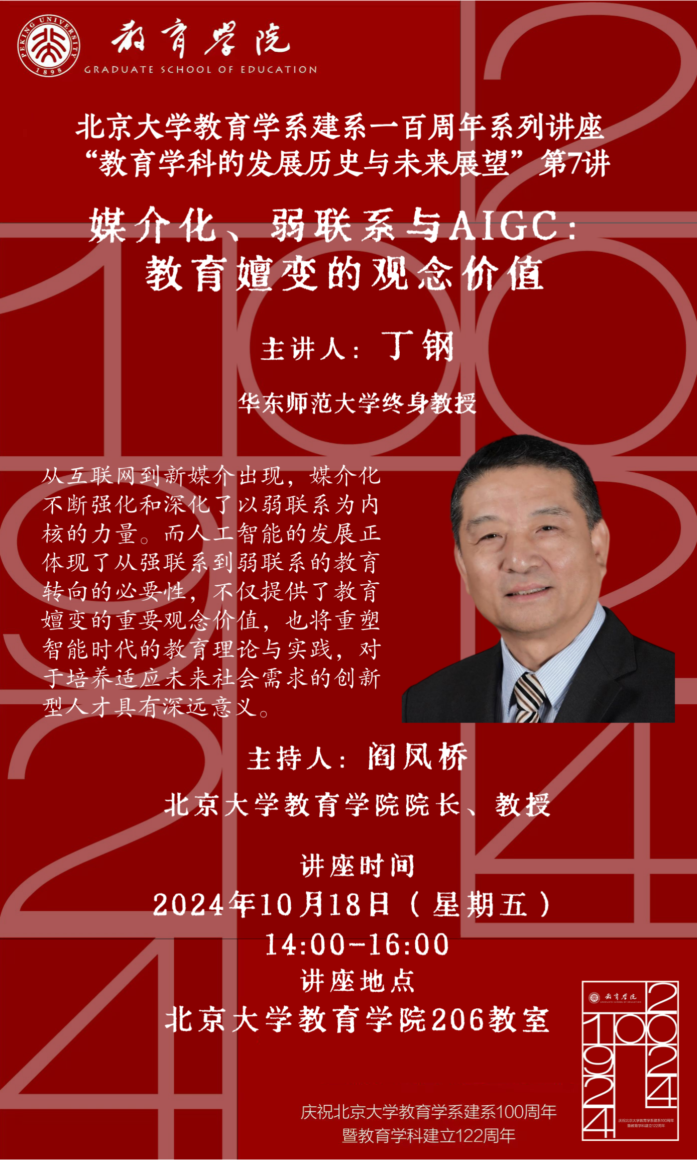 北京大学教育学系建系一百周年系列讲座第7讲-丁钢:媒介化、弱联系与AIGC:教育嬗变的观念价值