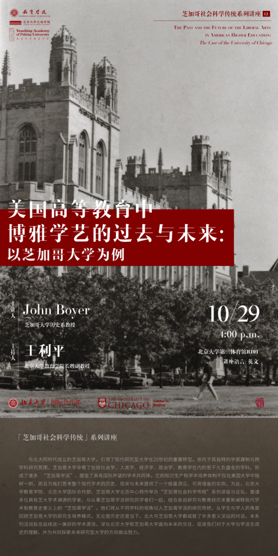 北大教育论坛第298讲 芝加哥社会科学传统系列讲座12 | 美国高等教育中博雅学艺的过去与未来:以芝加哥大学为例