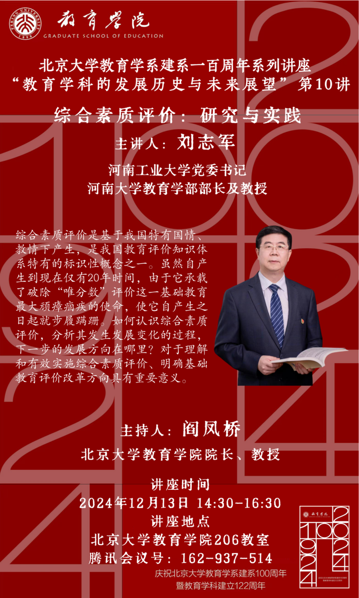 北京大学教育学系建系一百周年系列讲座第10讲 | 刘志军:综合素质评价:研究与实践
