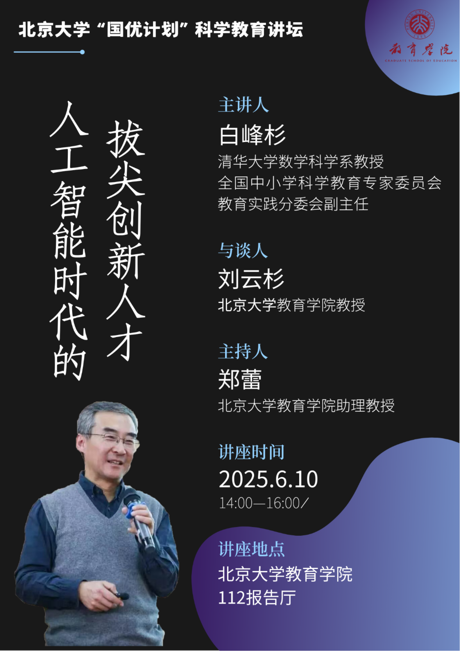 北京大学“国优计划”科学教育讲坛2025年第一期 | 白峰杉:人工智能时代的拔尖创新人才