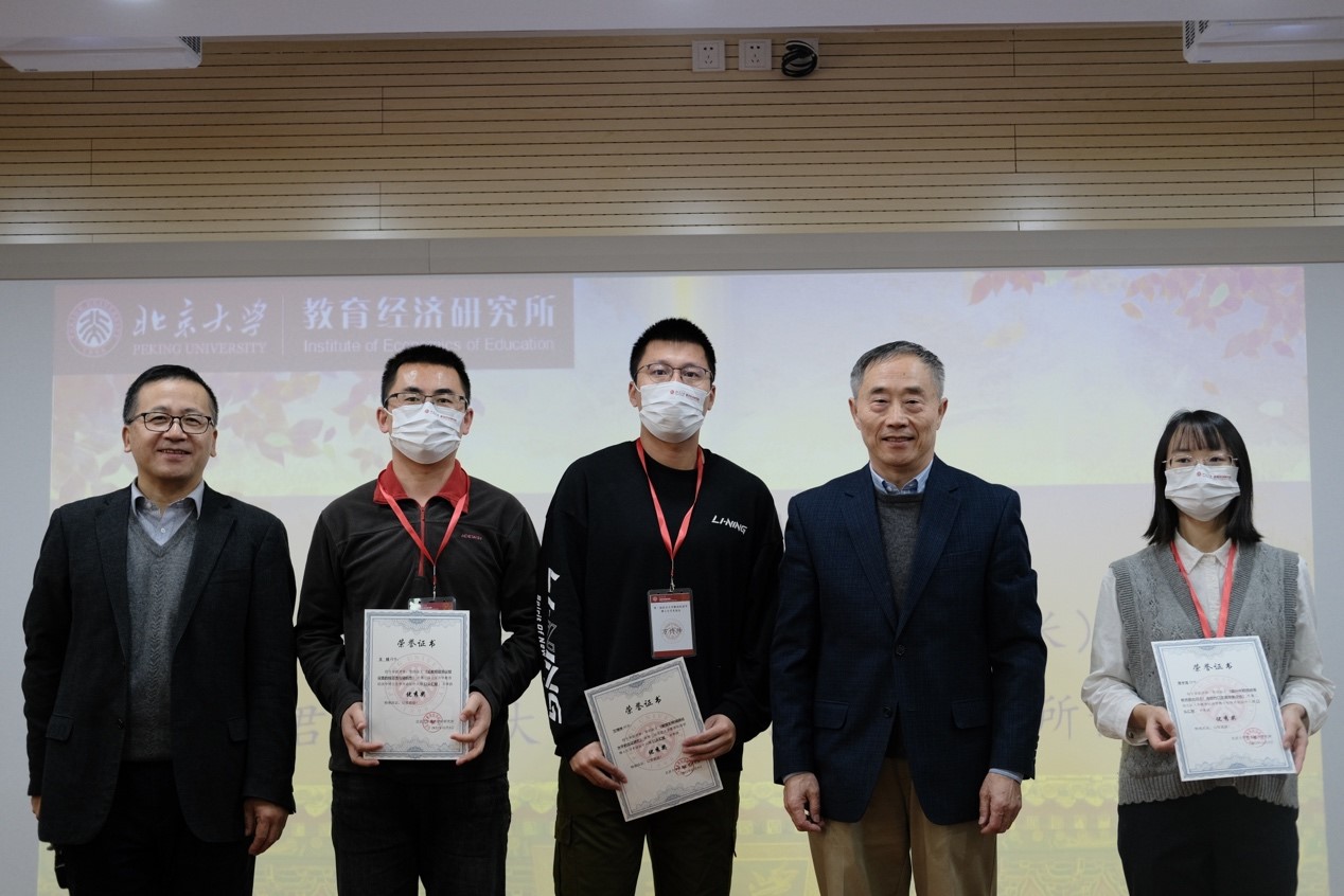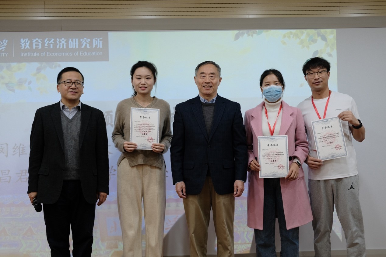 北京大学教育经济研究所副所长岳昌君教授宣布优秀论文评选结果,欧亿体育名誉院长闵维方教授为获奖同学颁奖。本届论坛共收到来自39所高校的中英文论文61篇,邀请来自北京大学、复旦大学、南京大学、华中科技大学、厦门大学等高校的24位专家学者进行了两轮匿名评审。根据校内外评审专家的双盲评审结果,最终评选出21篇获奖论文,包括一等奖3篇、二等奖6篇、优秀奖12篇。其中,冯沁雪、毛奇、薛远康获一等奖;陈得春、郭秋月、张文杰、蔡晨露、吴莞生、吴奇艳获二等奖,曹宇莲、金红昊、万博绅、王鐘、陈祥梅、贺海琨、廖小薇、孙绪光、万芮、张鑫杰、张子涵、朱春雨获优秀奖。除获奖论文外,还有3篇优秀论文入围口头汇报,13篇优秀论文入围海报展示。
