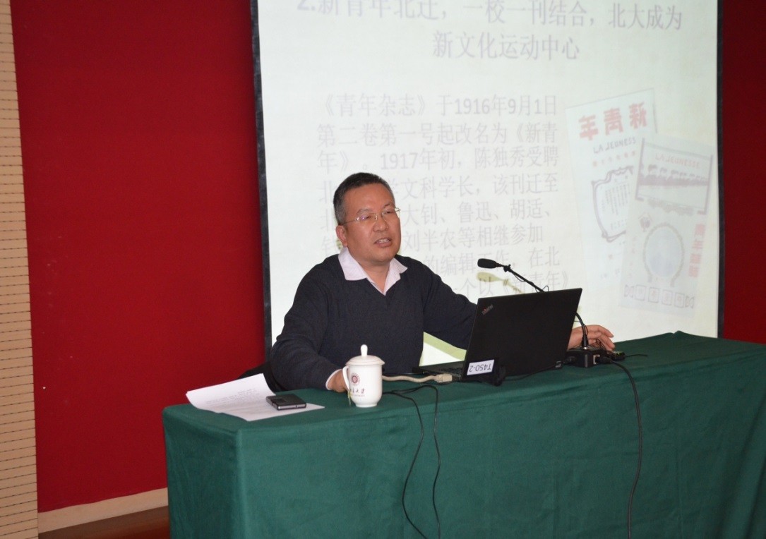 杨琥老师首先介绍了北京大学的改革与新文化运动的发生。著名教育家、思想家、民主主义革命家蔡元培先生担任校长期间,倡导“思想自由,兼容并包”,对北京大学进行了卓有成效的改革,为新文化运动的发展创造了条件。北京大学也由此成为新文化运动的中心,并成为“五四运动”的策源地。随后,杨琥老师介绍了北京大学在传播马克思主义、创建北京共产党小组以及参与筹备各地共产党小组、创建中国共产党中发挥的重要作用。最后,杨琥老师以李大钊和陈独秀为例,与大家分享了中国共产党创始人的思想特点和精神素质。