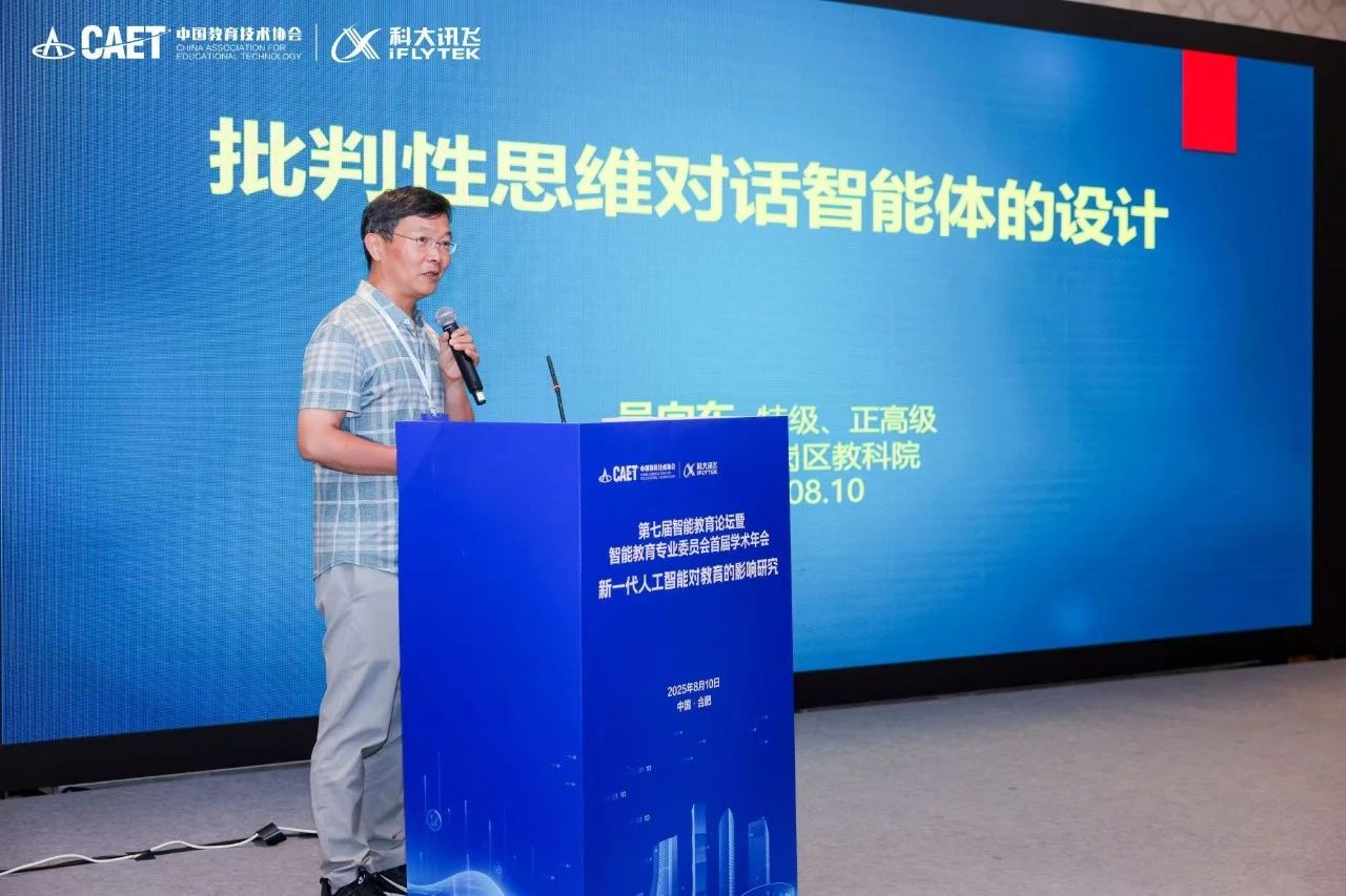 在实践案例分享环节,深圳市龙岗区教科院吴向东展示了批判性思维对话智能体的设计经验。