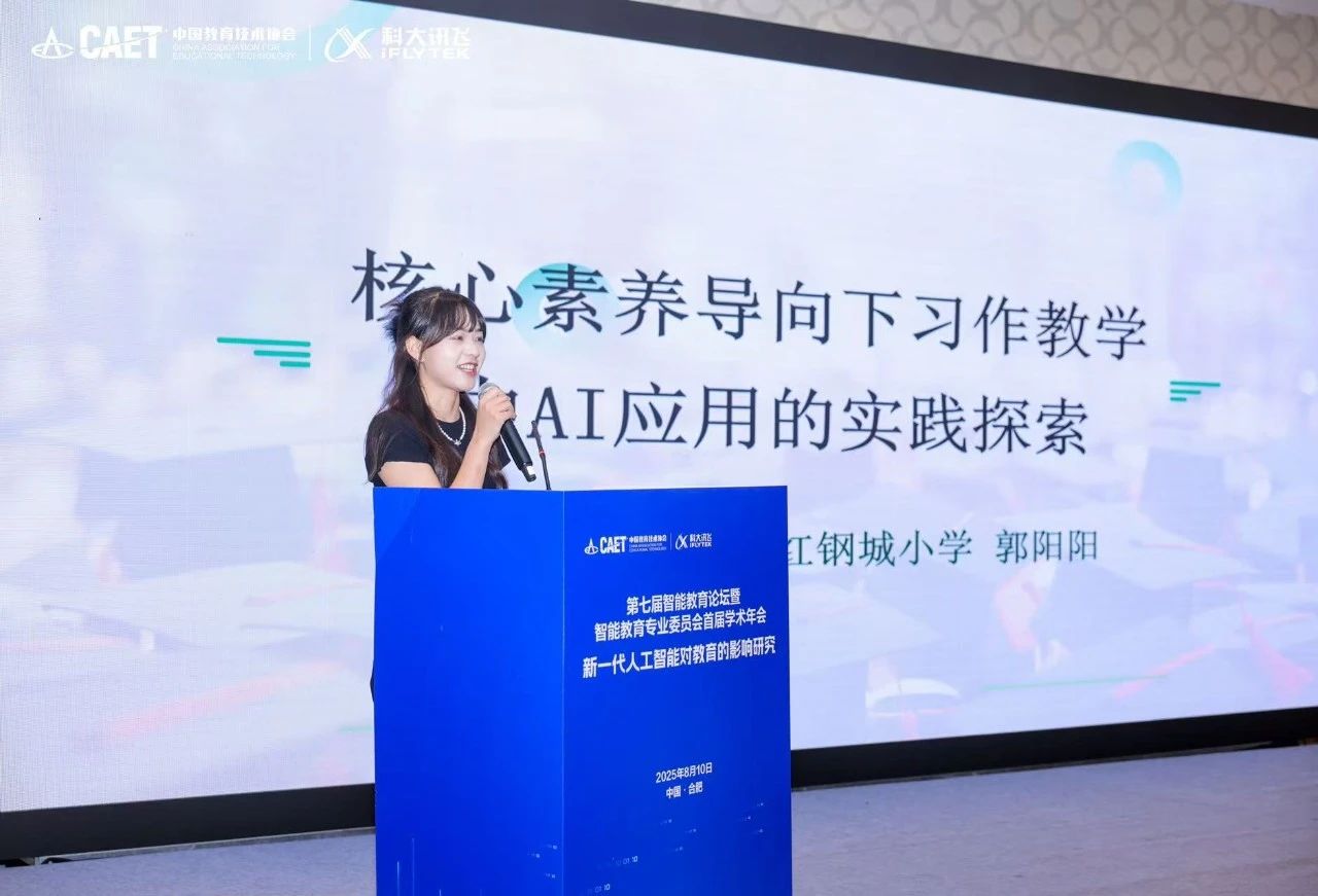 武汉市青山区红钢城小学郭阳阳汇报了核心素养导向下习作教学中AI应用的探索。
