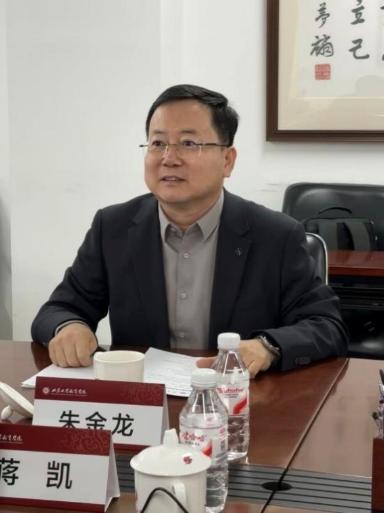 随后,朱金龙校长代表广州康大职业技术学院致辞,他首先对学院的热情接待表达感谢,接着详细汇报了康大职院的发展转向与定位。学校近年聚焦产教融合,已与小鹏汽车达成深度合作。朱金龙指出,希望北大教育学院能在科研支撑、人才培养方面给予专业指导,同时邀请北大专家团队赴康大职院调研交流,探索合作办会的可能性。蒋凯院长对康大职院的发展成就给予高度肯定,并祝愿康大职院在职业教育领域持续突破,为行业发展贡献更多力量。
