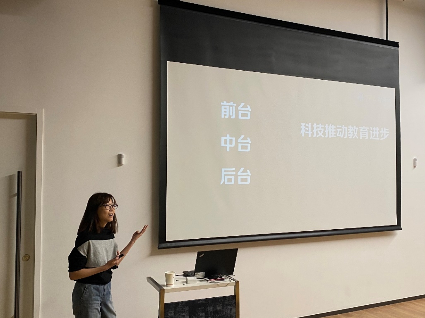 随后,好未来集团脑科学实验室的邹一祎老师到场向同学们作题为《基于脑的教与学》的报告,向参访同学介绍了脑科学实验室在好未来集团的定位,展示了基于脑科学研究进行结构化教学设计的过程和案例。本环节使参访同学了解了科学研究与教学实践相互转化与结合的过程,扩展了同学们在脑科学和教育技术方面的知识,使同学们对教育公司在科研方面的投入和研究有了更清晰的认识。