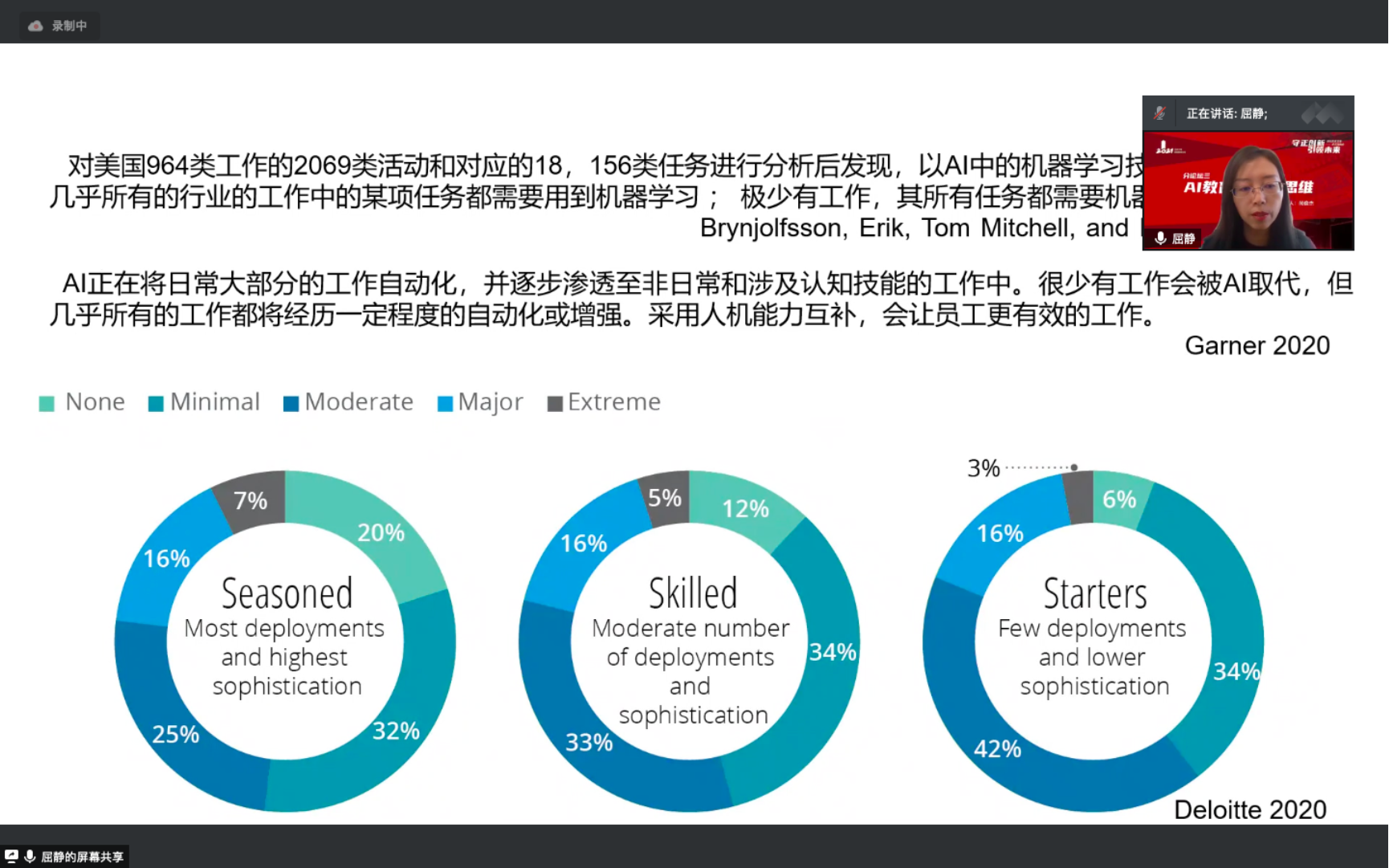 第二位主讲的嘉宾是来自IBM政府政策与事务部的屈静总监。屈静总监介绍了IBM面向终身学习的K-12 AI课程框架,以及基于该框架建立的IBM的平台,比如Teacher AdvisorMindSparkptech平台。IBM也开发了本地化国内人工智能启蒙课程,并在我国多个地区开展了IBM人工智能启蒙的志愿者活动。屈静总监提出,人工智能教育确实存在专业师资匮乏的困境,也提出了AI教育的数字化构想。