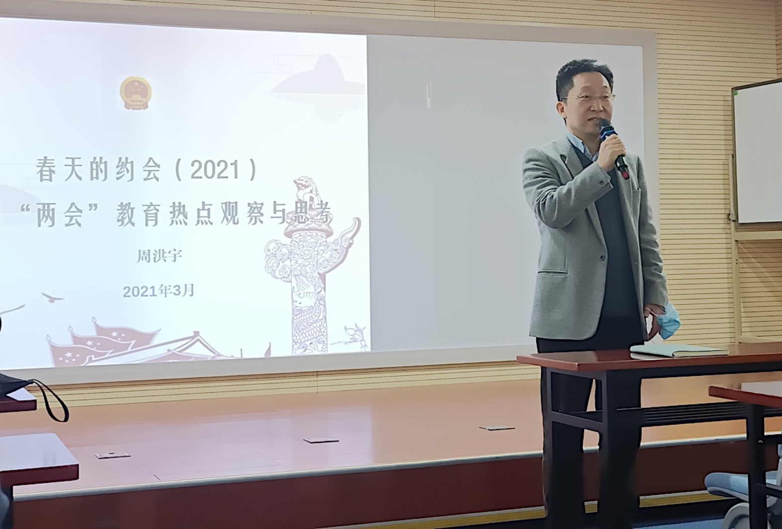 图:周洪宇教授做题为“两会”教育热点观察与思考的讲座
