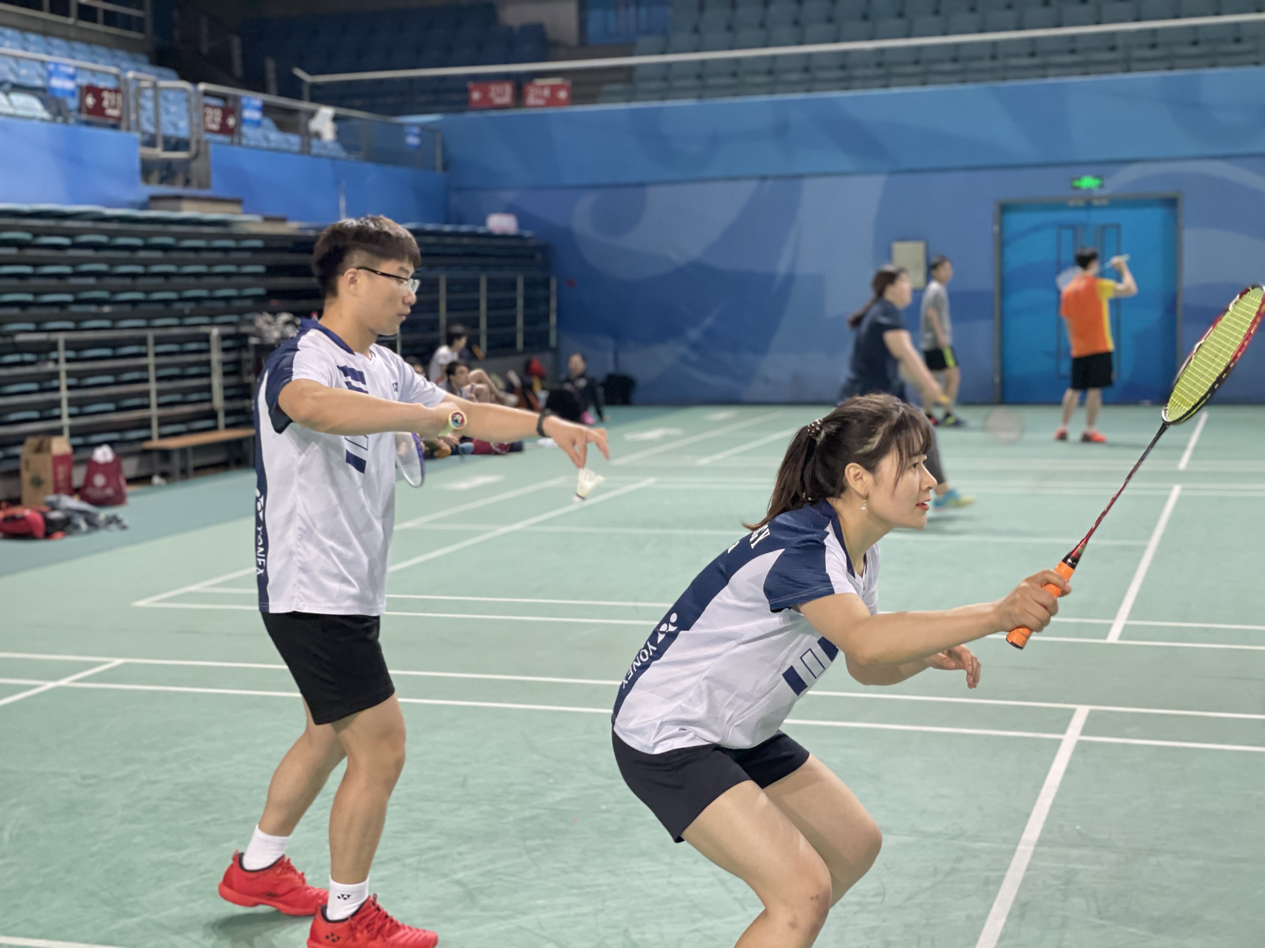 上午第一轮比赛,联队对阵乙组拥有冠军实力的队伍——外国语学院。教育学院陈得春和社会学系法翠雯组成混双以完美的配合拿下此次北大杯的首胜,极大地鼓舞了队伍的士气。教育学院乐惠骁和方程煜分别出战男单和女单,但对方实力强劲,两项比赛憾负于对手。随后陈得春和郭丛斌老师组成强势男双为联队扳回一城,比分来到2:2。压力来到了女双身上,社会学系代颖和谭心怡组成的女双顽强拼搏,为决胜局拼尽了全力,但是无奈对方实力太强,教育社会联队2:3负外国语学院。