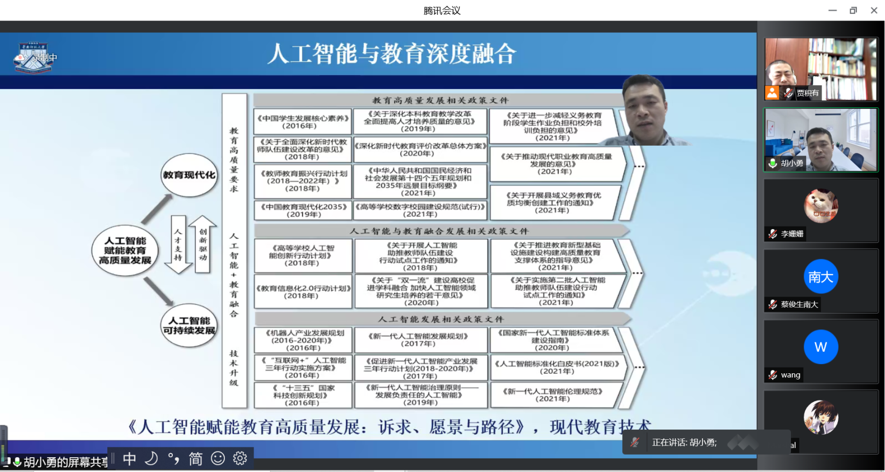 报告专家简介:胡小勇,教授、博导,华南师范大学教育人工智能研究院常务副院长、教育信息技术学院副院长,兼任全国高校教育技术专业教指分委秘书长,中国教育学会中小学信息技术教育专业委员会副理事长等职;研究领域:教育信息化理论与政策、信息化教研创新、智能教育。主持10余项国家省部级课题,多次获国家和省级教学成果奖和省部级科研奖励;开设《人工智能教育应用》教师教育慕课。