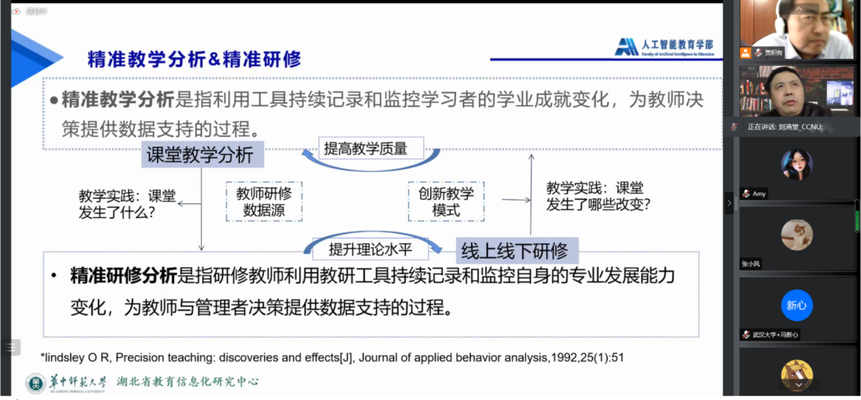 讲座最后,刘清堂教授为在线师生答疑解惑,并进行深入交流,强调了研究过程中理论基础的重要性,解答了关于AI算法和人工标注在研究和应用领域的比例等问题。贾积有教授总结了刘教授的精彩报告并表达谢意。