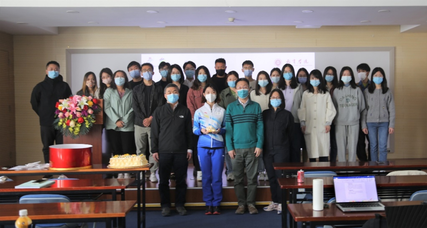 学院为两位志愿者准备了蛋糕和纪念品,阎老师为林凤仪切下第一块蛋糕。同学们分享特制蛋糕,现场洋溢着欢乐的氛围。最后,与会师生合影留念,分享会圆满结束。