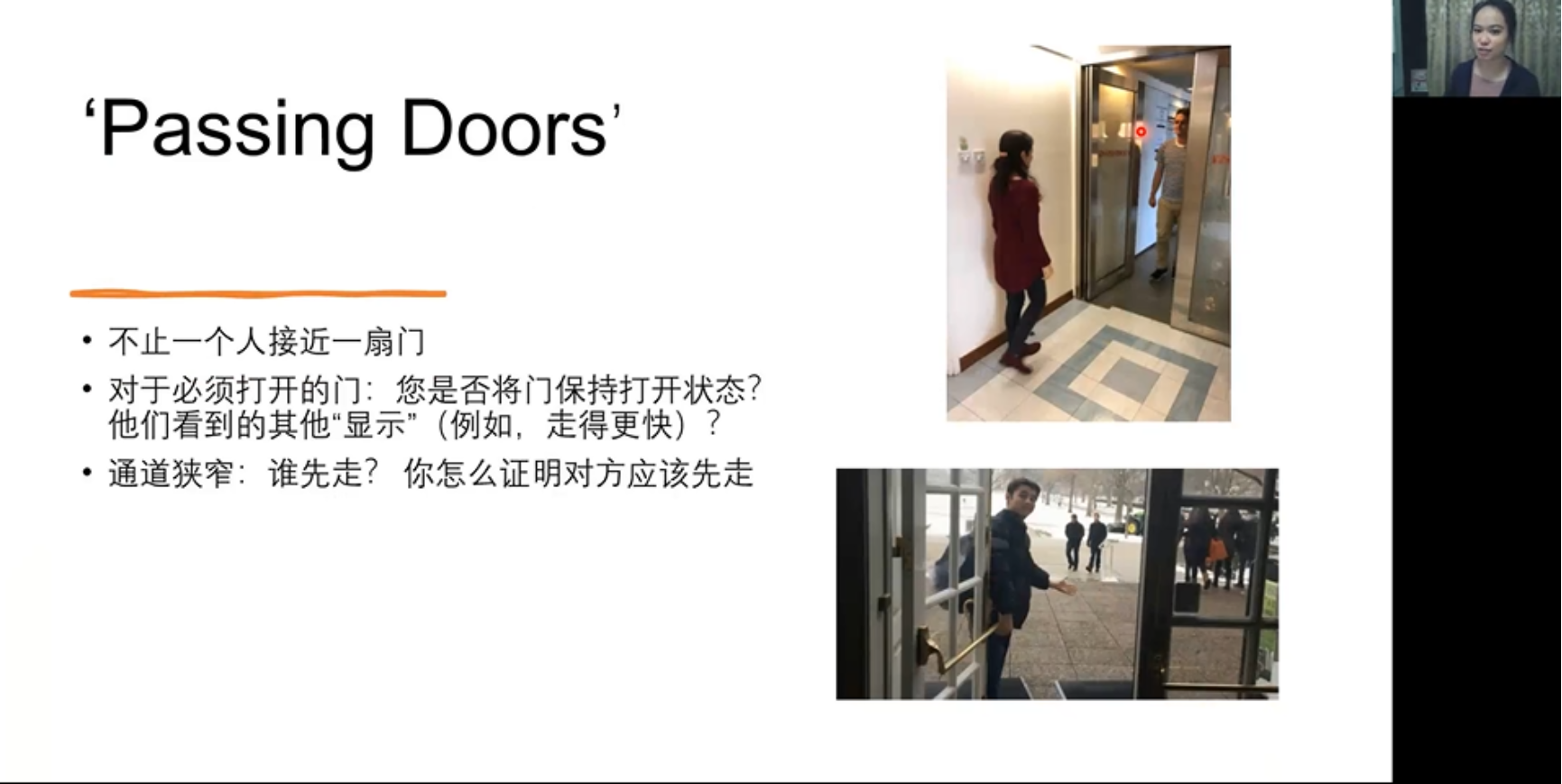 在方程煜的介绍之后,香港中文大学社会科学学院社会学系博士生许馨芷专门就质性研究中的一种前沿方法,也是在人机交互的相关研究中被广泛使用的方法——常人方法学进行了介绍。许馨芷深入介绍了常人方法学主要的应用场景及其优势,并对视频与话语材料的收集与分析进行了深入的讲解。