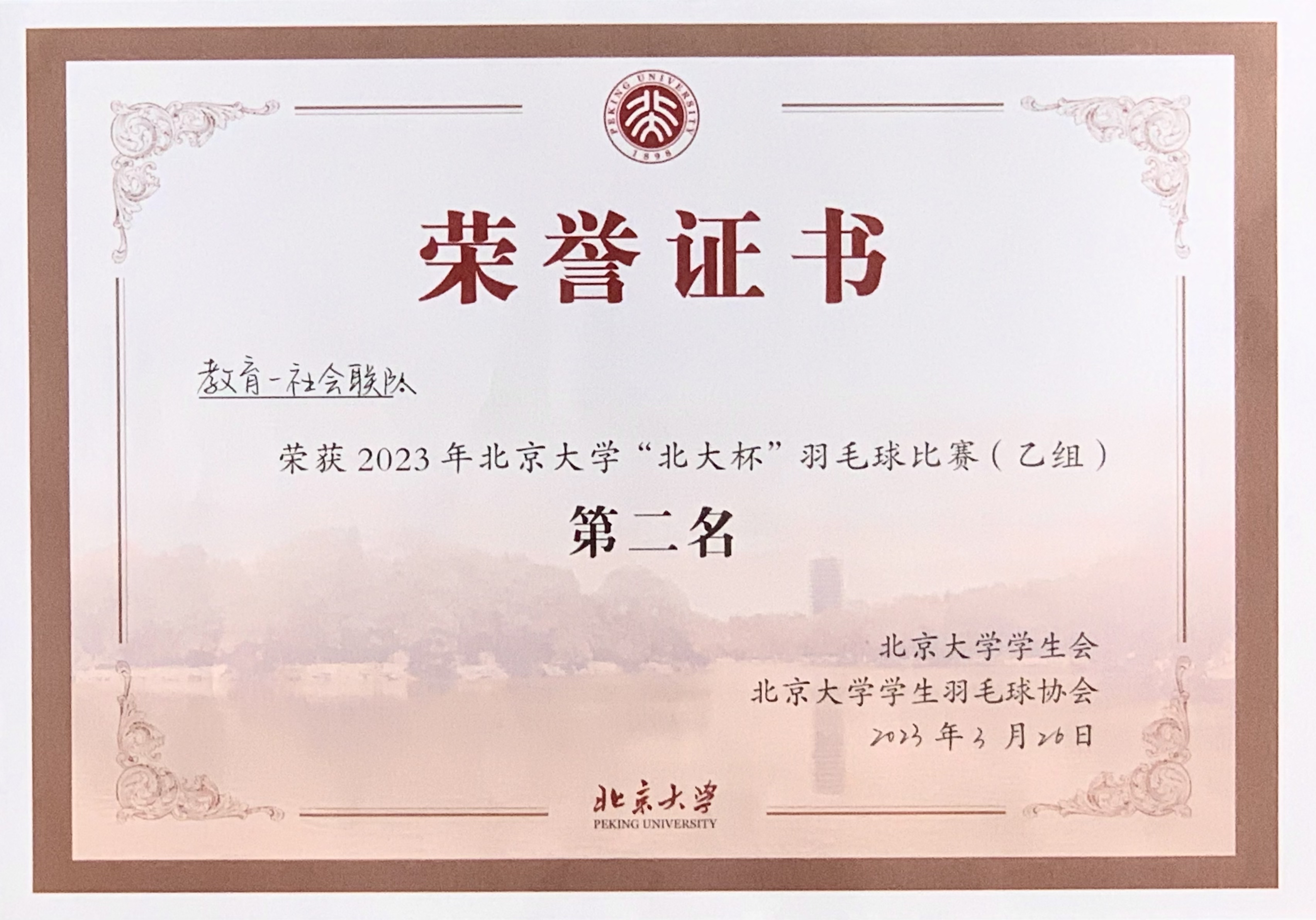 战报|教育社会联队夺得2023年“北大杯”羽毛球赛乙组亚军
