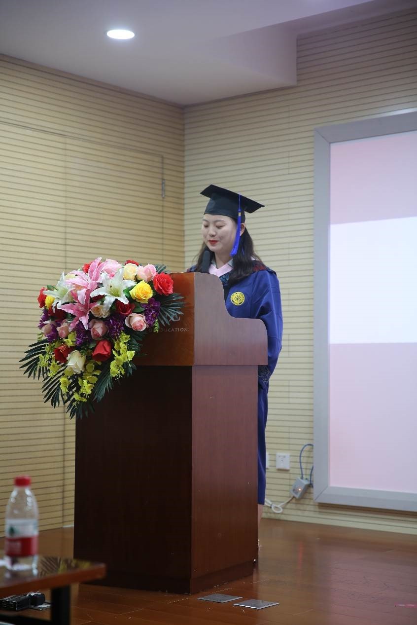 此次毕业典礼首次增设感恩环节,毕业生代表在离别之际向教职工代表致谢。