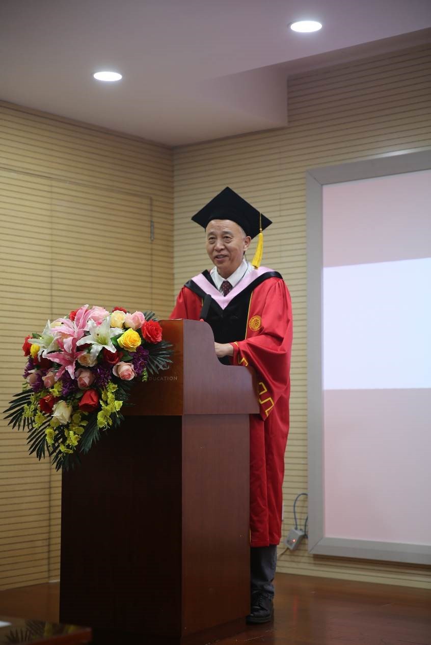 导师代表陈洪捷教授在发言中祝福毕业生同学们勇敢的跃入人海,做一朵奔涌的浪花,并嘱托同学们在丰富且复杂的世界中适当低调,在高调与低调之间自如地进行转换和穿梭,在高调和低调复杂的配置之中找到自己的调位。