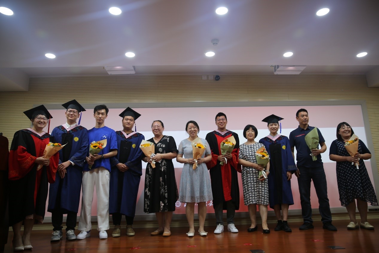 参加典礼全体师生合唱《燕园情》,表达依依惜别之情。仪式最后,毕业生身着学位服与学院教职工代表于学院门前合影留念。