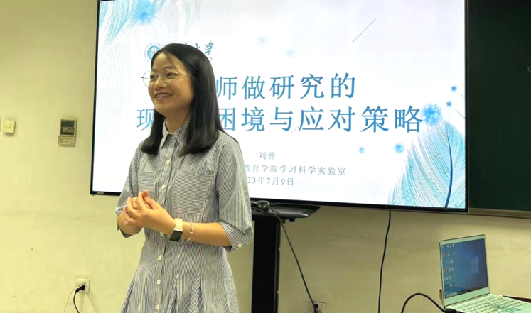 图7 刘誉博士分享《教师做研究的现状、困境与应对策略》