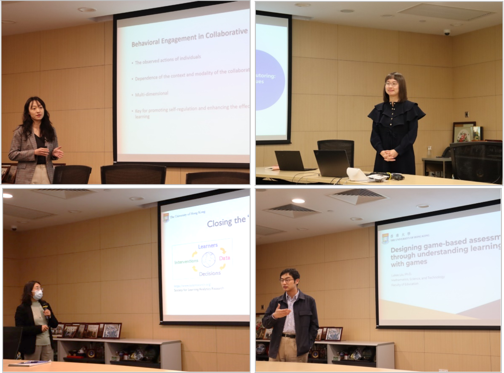 随后,来自港大、北大和港中文三所学校的9位博硕士研究生分别报告了自己的研究,涉及教育游戏开发、人工智能教育、课堂话语分析和技术促进学习等领域,为与会者带来了一场学术的盛宴。