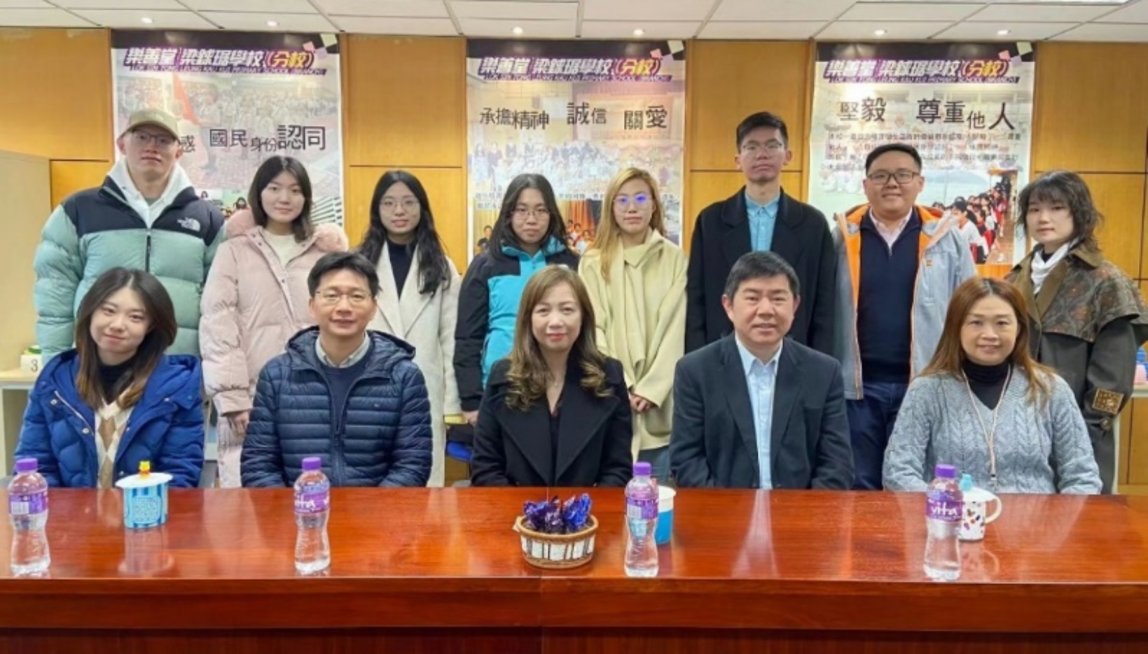 两校师生与田家炳基金会戴大为总干事、萧开廷副总干事合影