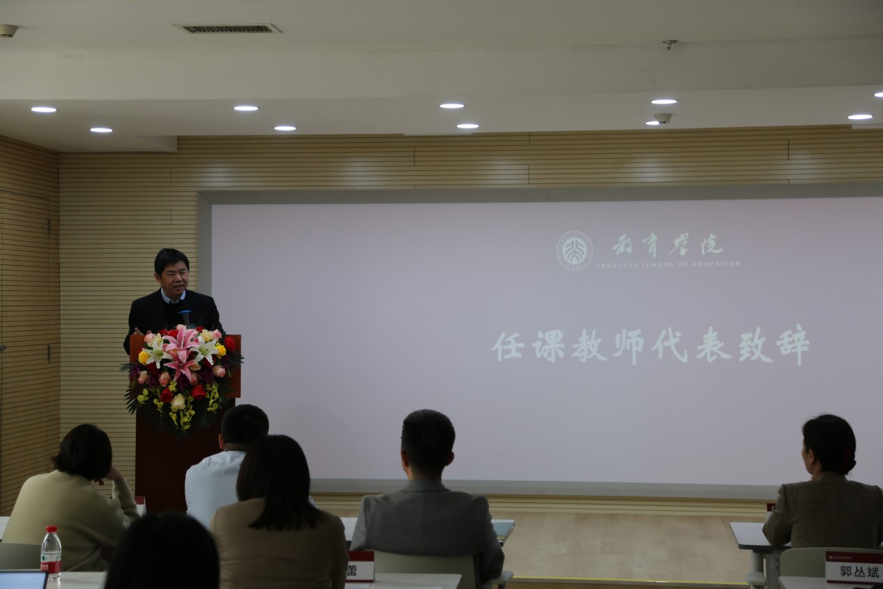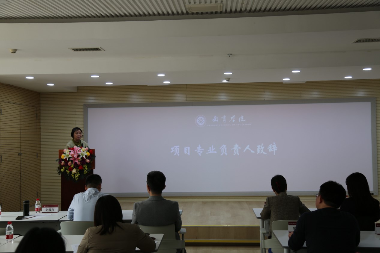 刘云衫教授致辞中把开班典礼比作“见证一场新的诞生”,希望同学们来自不同的学科背景,要处理好与教育学的融入与疏离的关系。她强调:“我们希望把这个项目变成立体的,有实习有实践,更应是主体的,把这段经历变成镌刻在你生命上的东西。”