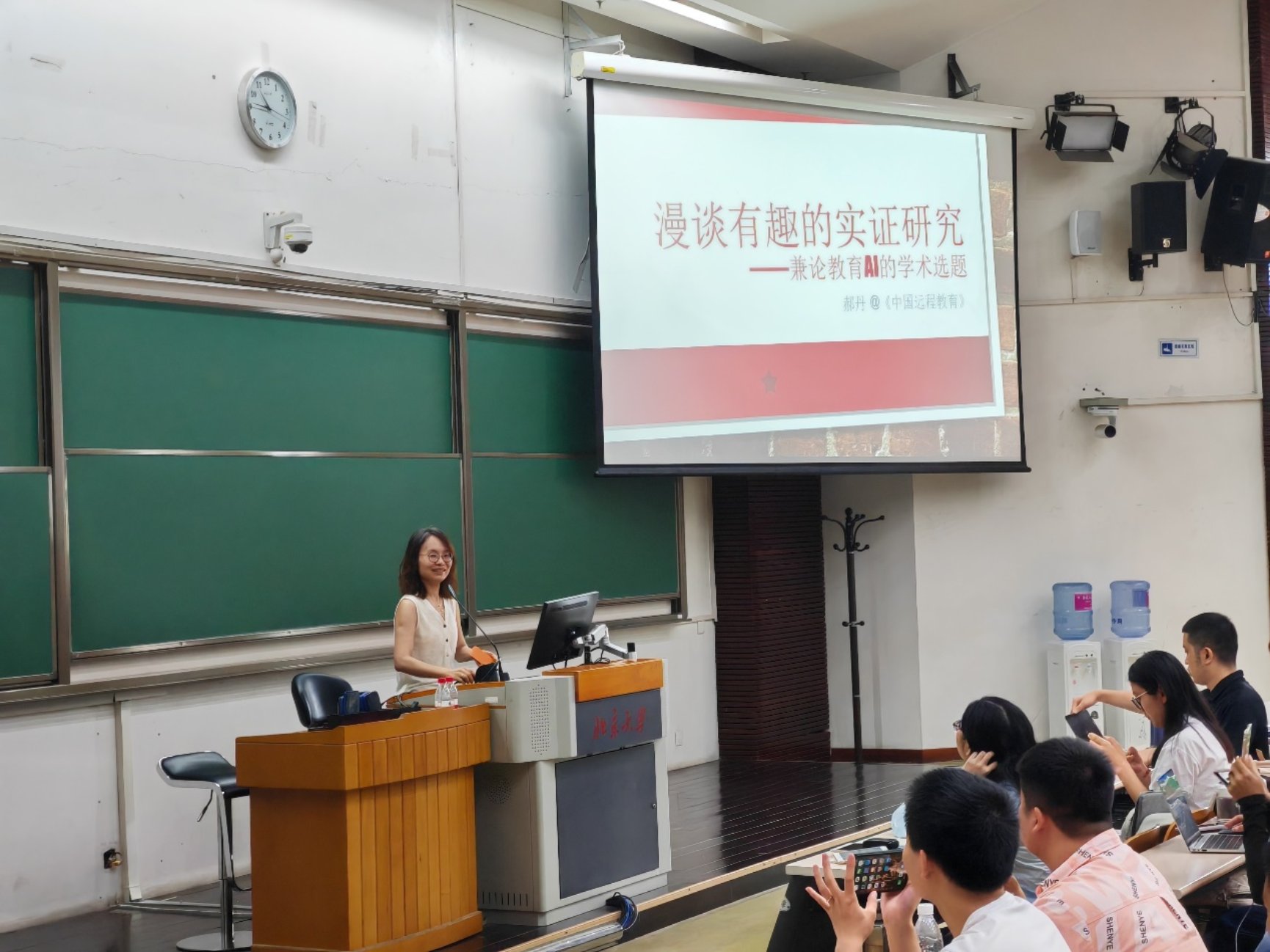 接着,《中国远程教育》期刊副主编郝丹进行了题目为《漫谈有趣的实证研究——兼论教育AI的学术选题》的报告。她介绍了该期刊的基本情况;从不同层面阐述实证研究文章的规范、价值与趣味,并结合实例讨论实证研究文章如何更有趣;最后,分析教育与人工智能领域学术论文的选题与写作方法。