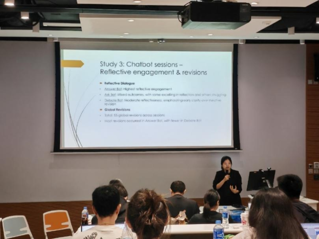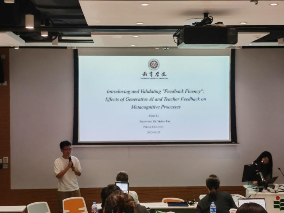 6月25日下午,代表团学生参加北大-教大的联合研究生学术研讨会。会议由教大博士生熊彧涵、杨仲尧主持,教大数学与信息技术学系研究助理教授杨茵博士作了点评。教育学院博士生安美心、张誉月、陈昂轩、刘怀亚,硕士生李子健、旷欣然、孙亦非以及历史系本科生桂丽分别作了“聊天机器人支持的对话教学”“家长参与促进年轻学习者在线学习表现”“基于大语言模型多智能体的数学智能教学系统”“基于多智能体的课程设计”“生成式人工智能助力现实世界数学学习:培养六年级学生的适应性专长”“介绍与验证反馈流畅度:生成式人工智能和教师反馈对元认知过程的影响”“从图像到答案:OCR与DeepSeek驱动的智能数学辅导平台”“数独智能教学系统的设计和实验研究”“AI驱动的继续教育学员反馈智能采集与课程效果评价新模型”等报告,分享了研究成果。