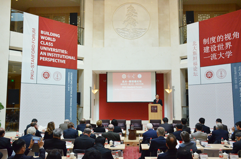 2016年11月4日,第二届北大-斯坦福论坛暨2016年北京论坛教育分论坛在北京大学斯坦福中心隆重拉开帷幕。本届北大-斯坦福论坛的主题为“建设世界一流大学:制度的视角”。在为期两天的会议中,来自中国、美国、加拿大、澳大利亚、英国、俄罗斯、芬兰、日本、韩国、菲律宾、巴基斯坦、中国香港和澳门等国家和地区的四十余位大学校长和学者、国际组织专家汇聚一堂,共同探讨世界一流大学的产生、组织、管理和发展等重要问题。