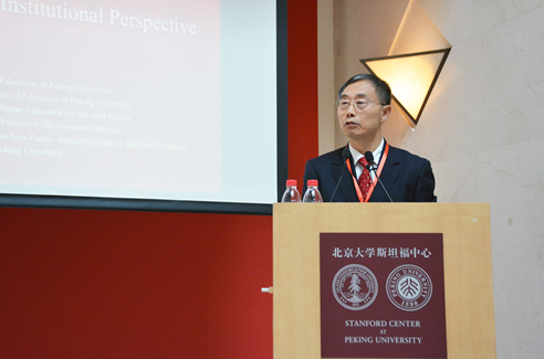 中国教育发展战略学会会长、欧亿体育名誉院长闵维方教授在开幕式致辞中指出,在科学技术迅速发展以及网络社会和知识经济崛起的背景下,建设世界一流大学已经成为一种世界现象,并且成为提升国家硬实力和软实力的战略举措;通过聚集优秀学者、寻求真理、推进前沿研究,大学不仅成为推动经济发展的引擎,同时也是提供文化产品、价值观和信念的基础。但是,在建设世界一流大学的过程中,相对浅层次的技术方法和资源配置受到了广泛的重视,而更深层次的制度问题却被忽略。2016年北大-斯坦福论坛力图将对高等教育发展的思考从表层的技术关注转向更深层次的制度探讨,从而深化对世界一流大学建设的理论认识,促进实践探索。