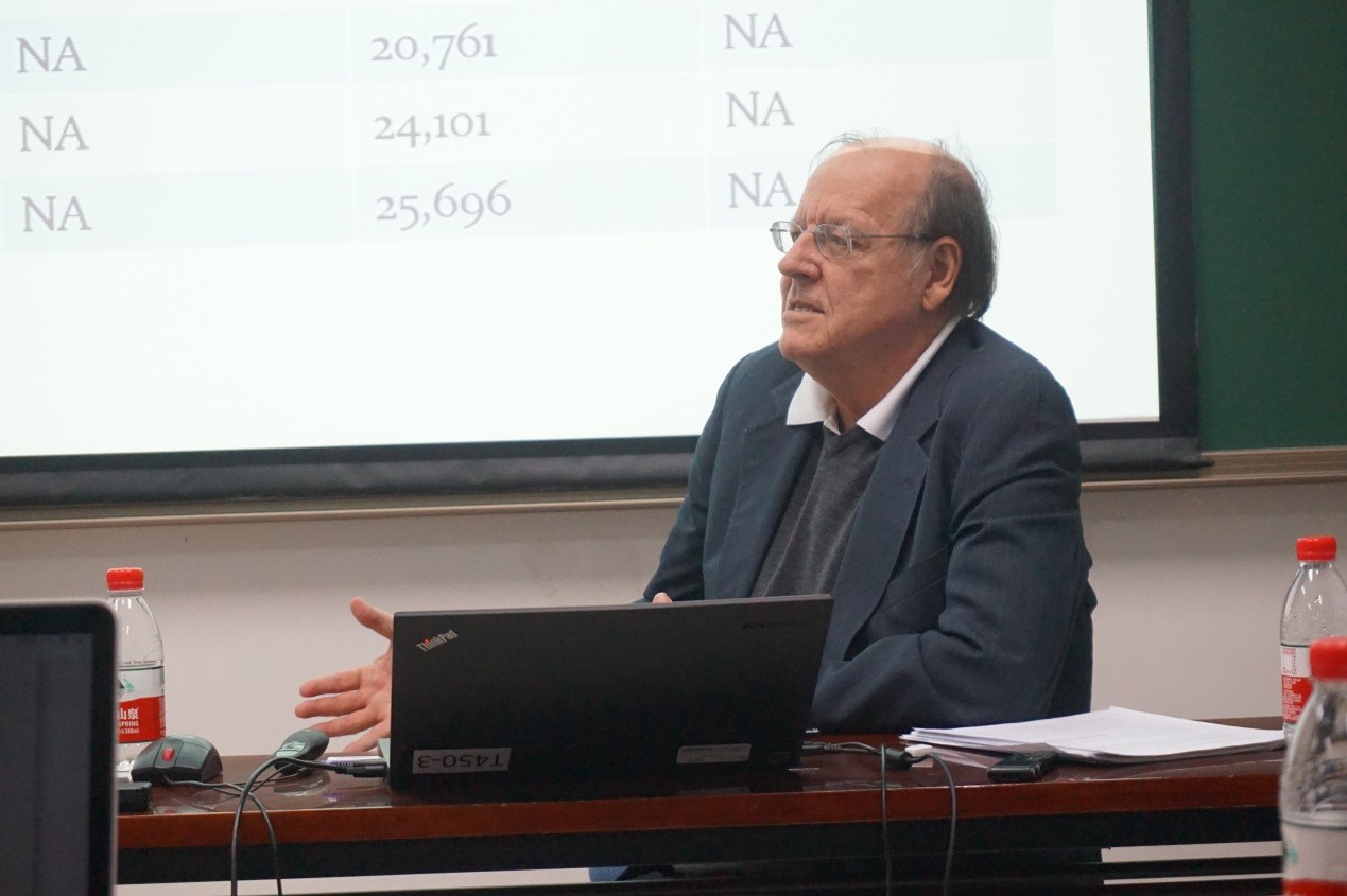 Fairweather教授的第二场讲座以“高等教育与经济发展:谁付费?谁收益?”为主题,同在场师生进行了交流和分析。Fairweather教授从个人层面和社会层面上,分析了美国高等教育的支出与收益情况,特别是研究高等教育与经济发展的关系,包括学生高等教育参与率的提升对个人以及社会发展的可能性影响,以及探讨了高等教育在质量、成本与入学率之间的平衡问题。