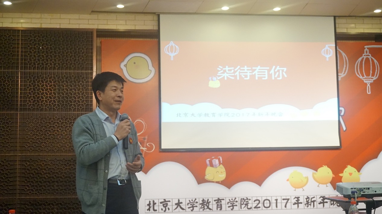 晚会开幕后,教育学院院长陈晓宇教授首先代表学院致辞。他肯定了2016年我院在教学、科研和社会服务领域取得的成绩,并指出学院在即将到来的2017年任重道远,期待全体师生发扬优良传统、奋发向上。陈晓宇院长祝愿教育学院全体师生新年愉快、身体健康、生活幸福,在新的一年取得更大的成绩。