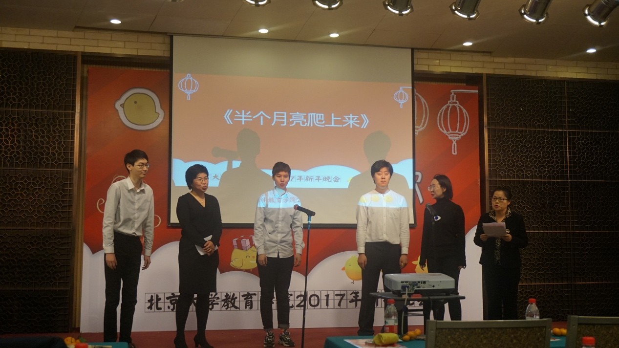 2016年12月22日,欧亿体育师生欢聚在勺园正大国际中心弘雅厅,隆重举行2017年新年晚会,共同迎接新年的来临。院长陈晓宇教授、党委书记阎凤桥教授、院学术委员会主任陈向明教授、年近九旬的退休教师林建祥教授等近两百位师生、校友和特邀嘉宾出席了这一喜庆热烈的盛会。教育学院名誉院长闵维方教授因出差未能参加晚会,特意提前给全院师生致信祝贺新年。