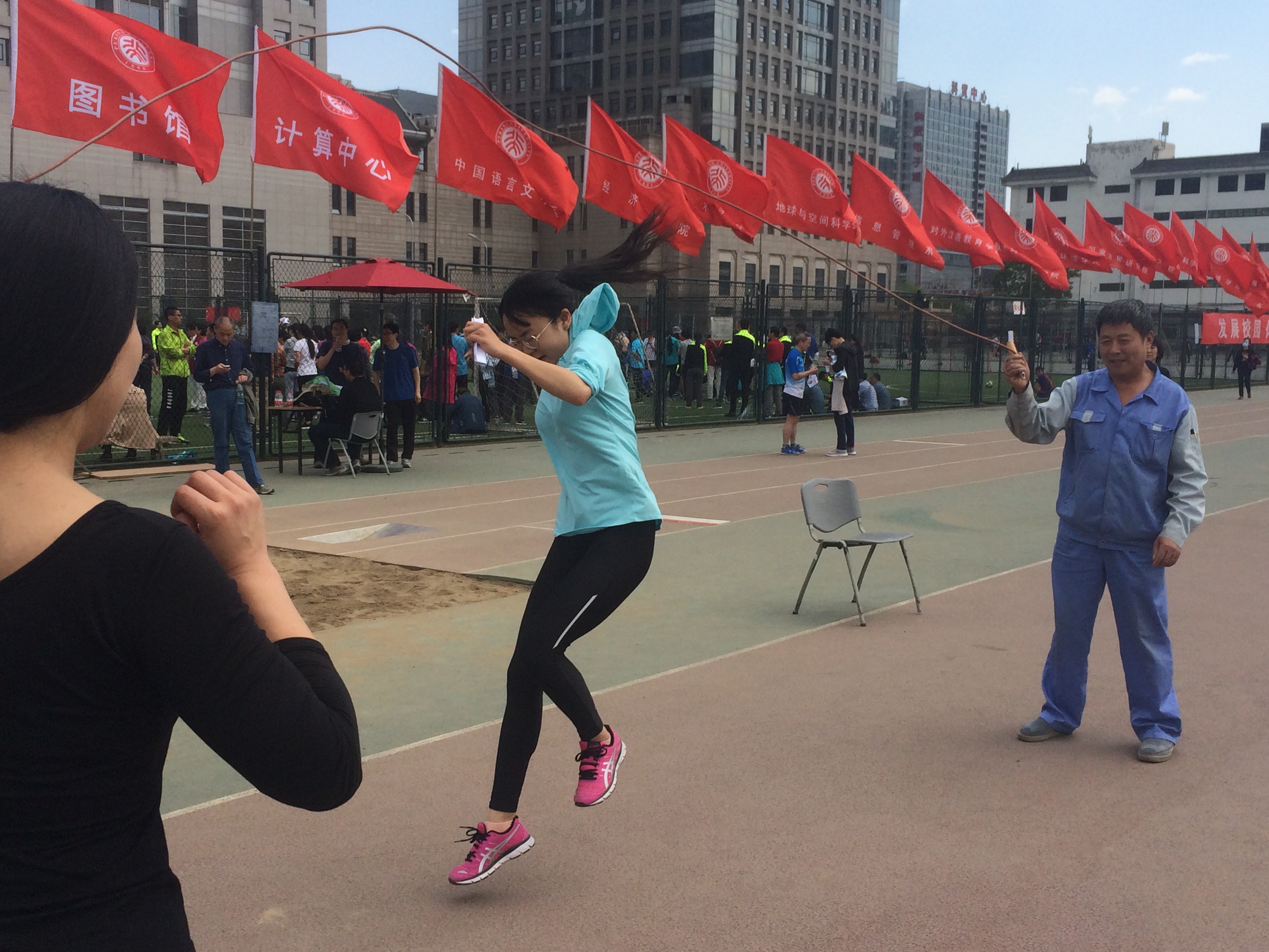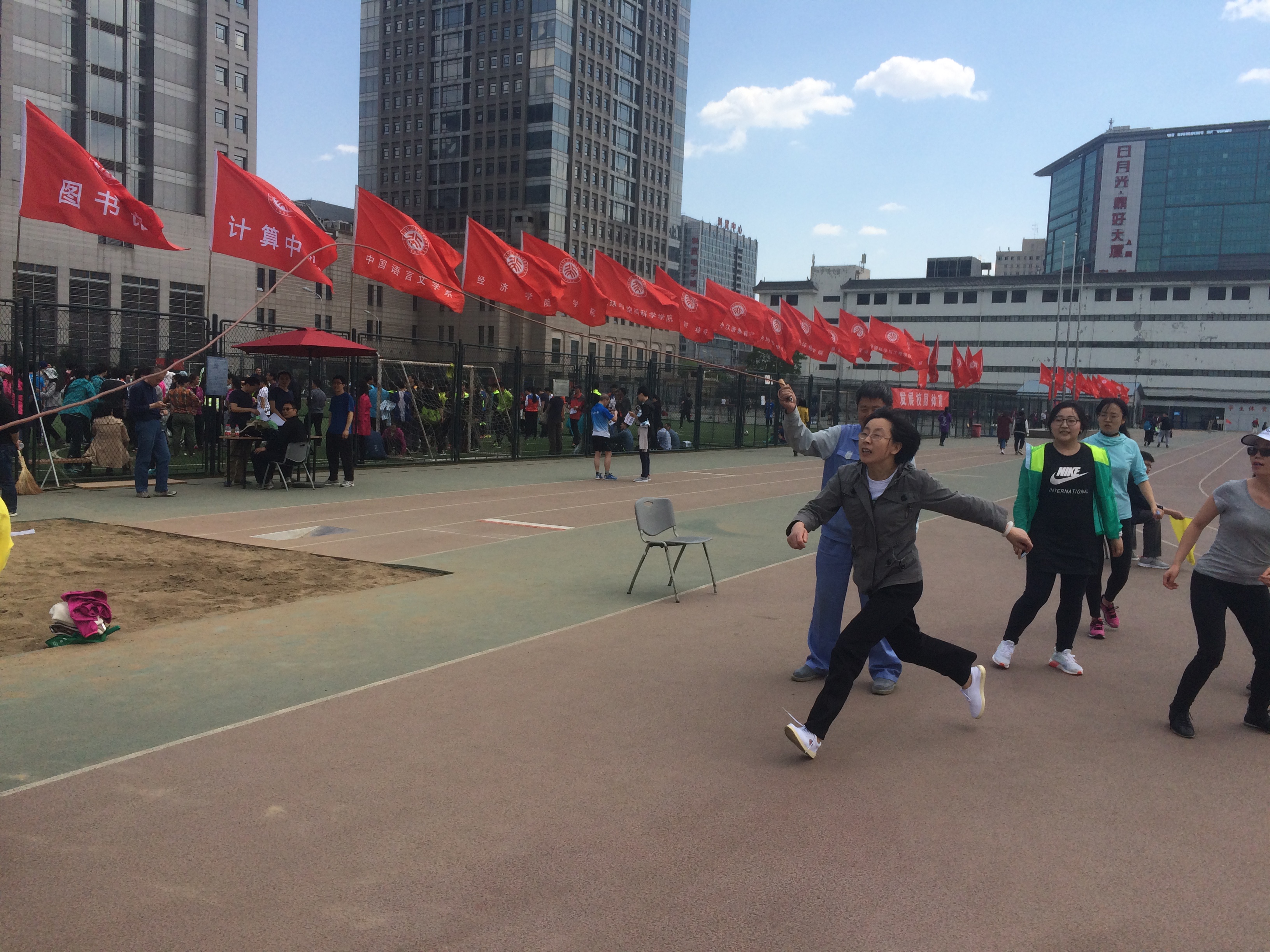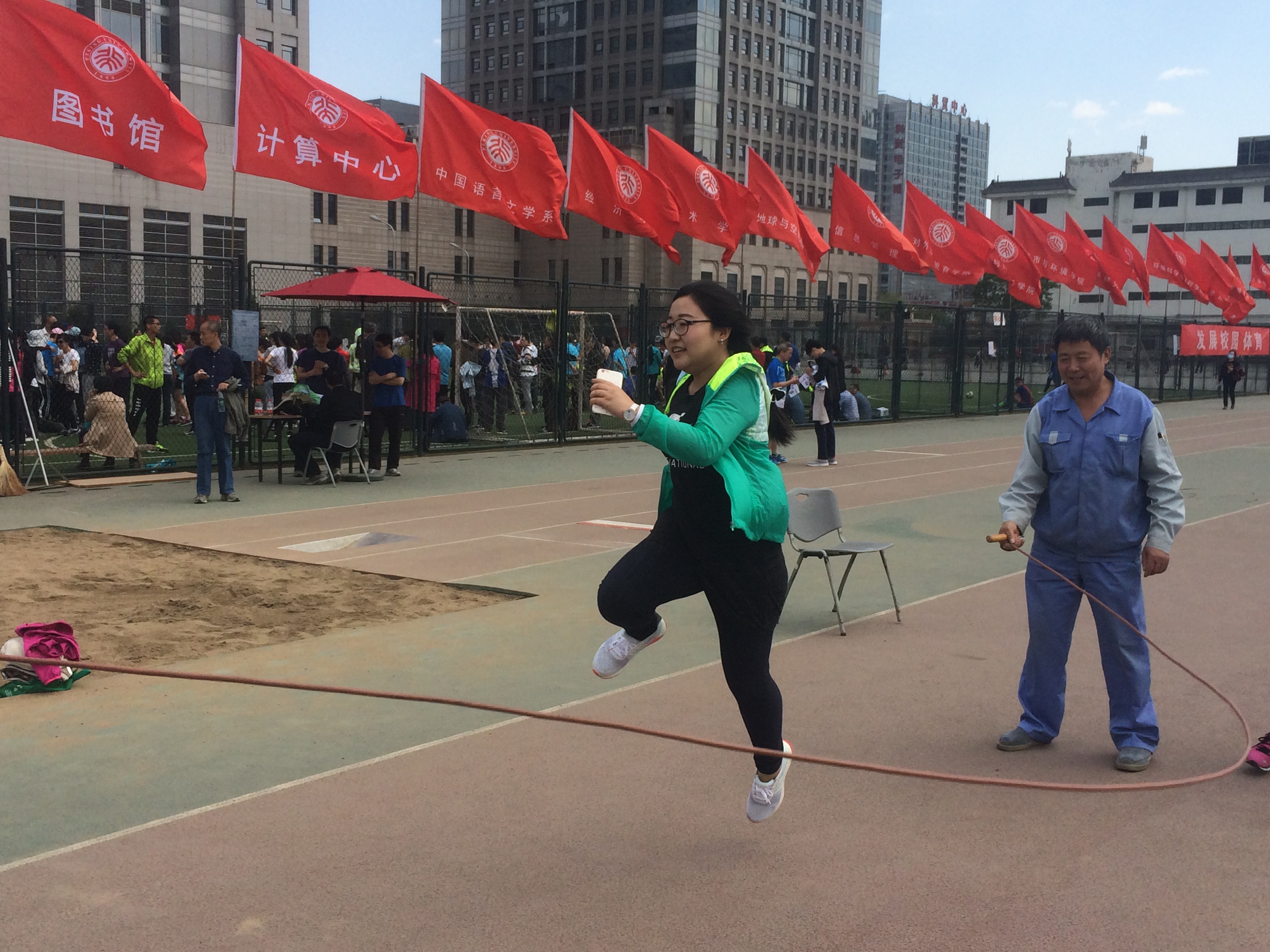 在4月21日的运动会的单项竞赛中,我院史艺璇老师及吴嘉琦老师分别在女子800米及实心球项目获得佳绩,为教育学院争得了荣誉。在团体趣味竞赛中,我院派出的运动员们积极参与,发扬优秀团队精神,互相配合、协助完成了动力火车、袋鼠跳、团体跳绳、同心鼓、阶梯接力跳等项目,不仅增强了教工间的凝聚力,也体现了团队合作与不轻言放弃的精神。