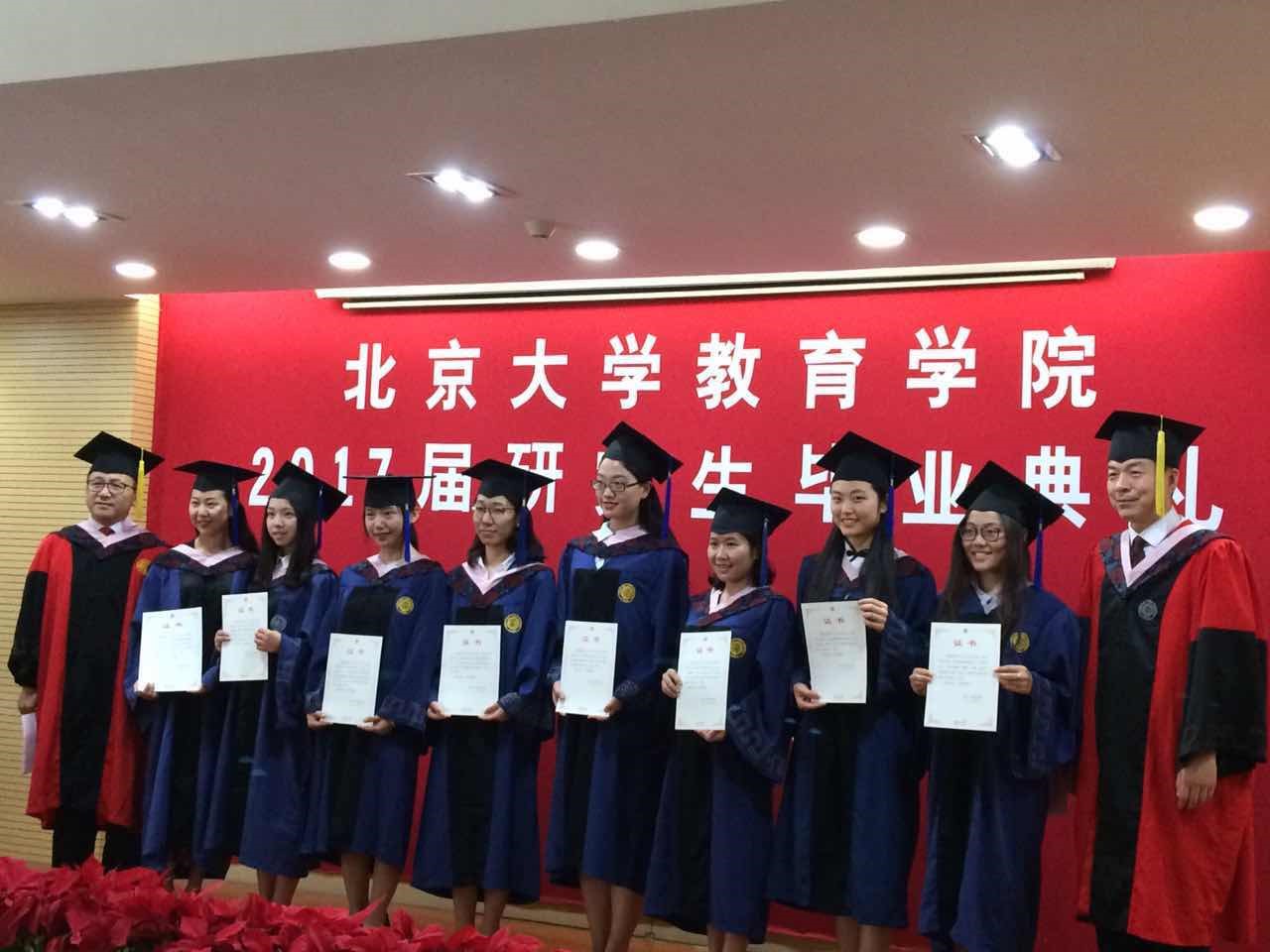 教育学院教师和毕业生代表致辞结束后,各系负责人丁延庆副教授、尚俊杰副教授、鲍威副教授、沈文钦副教授分别向各班毕业生赠予了学院特别为毕业生订制的毕业纪念衫、纪念册。这些纪念品蕴含了学院对2017届毕业生的诚挚祝福。毕业典礼结束后,全院师生在学院大楼前合影留念。学院大厅还举行了气氛热烈活泼的毕业生冷餐会,学生和老师们互相合影留念,在学院设计精美的校友墙前记录这一难忘的时刻。