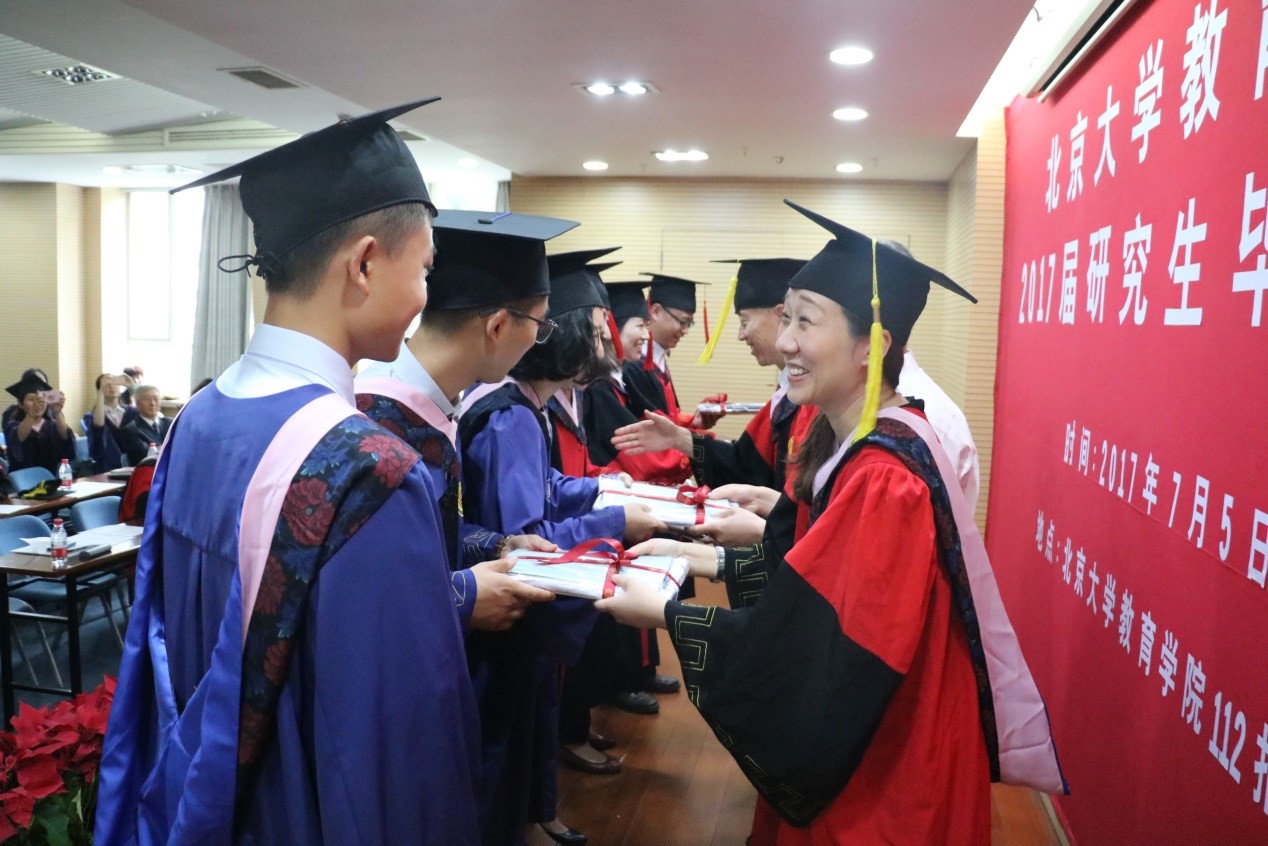 7月5日下午,欧亿体育2017年研究生毕业典礼暨学位授予仪式在教育学院112报告厅隆重举行。教育学院名誉院长闵维方教授、院长陈晓宇教授、党委书记阎凤桥教授、院学术委员会主席陈向明教授、院学位评定委员会主席陈洪捷教授等多位教师和全体毕业生出席本届毕业典礼,部分毕业生的亲友也出席了典礼。毕业典礼由副院长刘云杉教授主持。