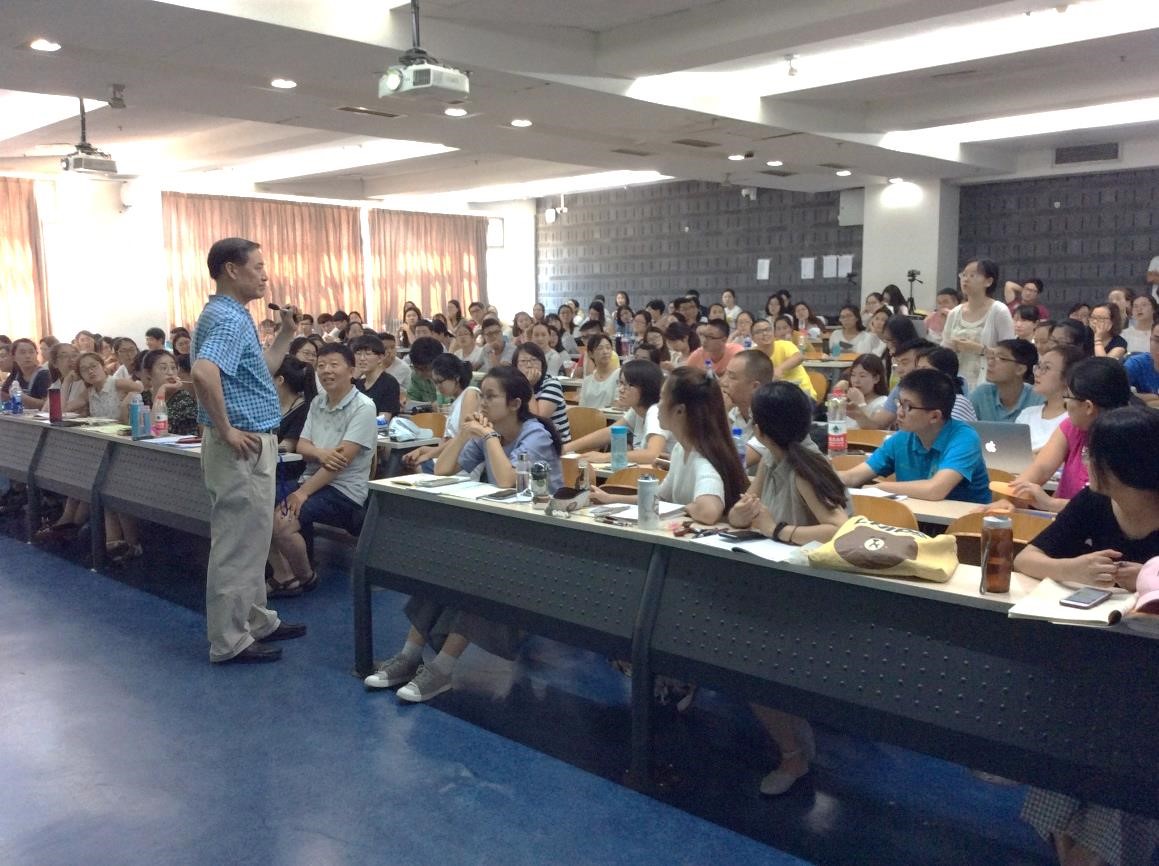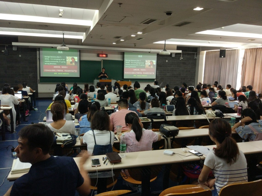 参加本次暑期学校的225名学员来自全国25个省市区,以及澳门、韩国地区的115所高校、重点中学和知名企业。受邀授课的海内外知名专家包括北京大学慕课领导小组组长、中国教育技术协会副会长李晓明教授、中国教育技术协会常务副会长张少刚教授、北京师范大学教师发展中心主任李芒教授、首都师范大学教育技术系主任焦宝聪教授、社会科学领域世界排名第一的台湾科技大学社会科学学院院长黄国祯教授、美国纽约州立大学教育学院教授兼华中师范大学教育技术学院院长杨浩教授、香港公开大学研究总监李锦昌教授、香港大学教育学院王敏红教授等。这些专家围绕慕课、人工智能教育应用、开放教育资源、电子教材、教师培训、创新能力培养、国际和国内期刊论文写作等教育技术研究的前沿问题精心备课,认真授课,并辅之以课堂讨论、小组协作和课后测试等多种教学方式;他们高度负责的教学精神和显著的教学效果得到了学员们的高度评价。同时,本期暑期学校在教学管理方面,借助课程管理系统和学员自带手机进行混合式教学,通过在线测验和讨论等形式考察学员学习过程。在线学习过程的参与和测试成绩汇总产生优秀学员,小组互评产生优选论文,全体学员为小组成果展示打分产生优秀小组;此种强调过程评价、民主参与的混合式教学方式也深受学员们的喜爱。