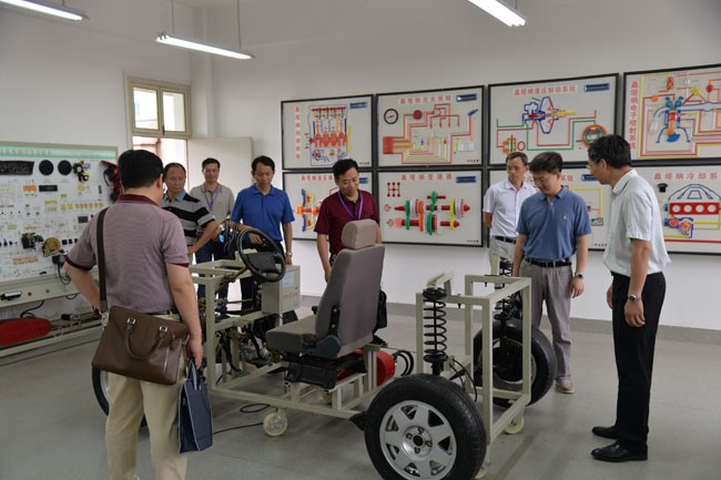 与会嘉宾参观黄冈中学汽车技术教室