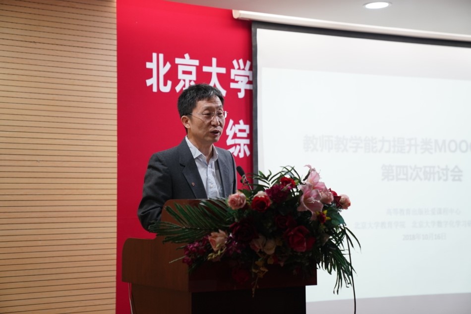 阎凤桥教授首先代表教育学院欢迎各位教师的到来,他阐明了本次研讨会的目的不仅是总结和成果展示,更是对课程教学的深度研讨,同时感谢高教社、教育学院团队、各位专家、各项目团队对本次研讨会的支持。最后,阎凤桥教授希望MOOC能在教师能力提升方面发挥实质性作用,也期待教育学院在未来取得出色的教育经验与成果。
