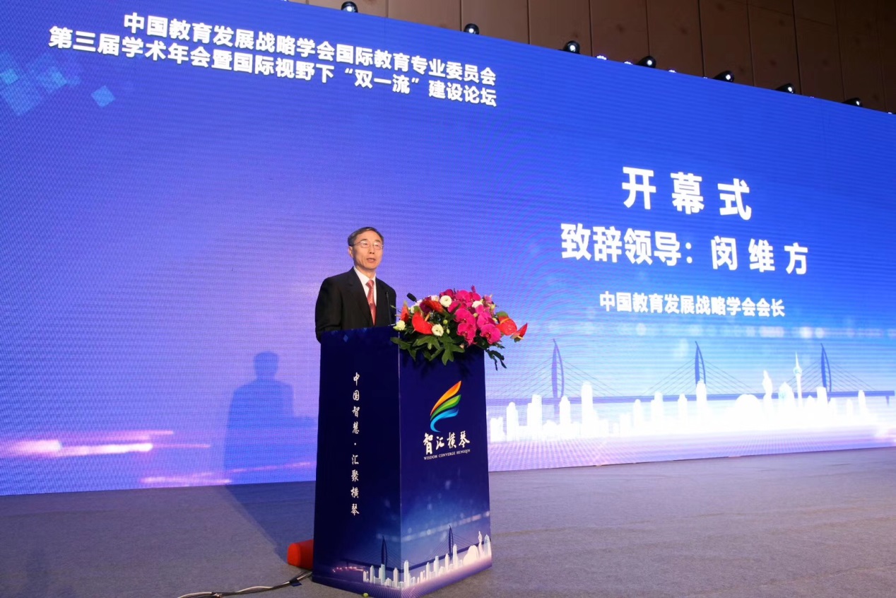开幕式由澳门大学校长、中国教育发展战略学会副会长兼国际教育专业委员理事长宋永华主持,中国教育发展战略学会会长闵维方,国际合作与交流司原司长、国际教育专业委员会荣誉理事长李东翔,珠海横琴新区管委会副主任李志平先后致辞。北京大学原校长林建华,华南理工大学校长高松,教育部国际合作与交流司原司长、中国驻美国使馆教育处前公使衔参赞岑建君,西南交通大学校长徐飞,宋永华做大会主旨报告。