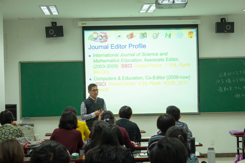 2018年12月20日,台湾师范大学蔡今中教授、台湾科技大学黄国祯教授在我院做学术报告,报告主题分别为“数字学习的研究趋势与创新议题”,以及“研究构思的创新与主题规划”。教育技术系主任尚俊杰副教授主持此次学术报告,全院三十多名师生参与此次学术活动。