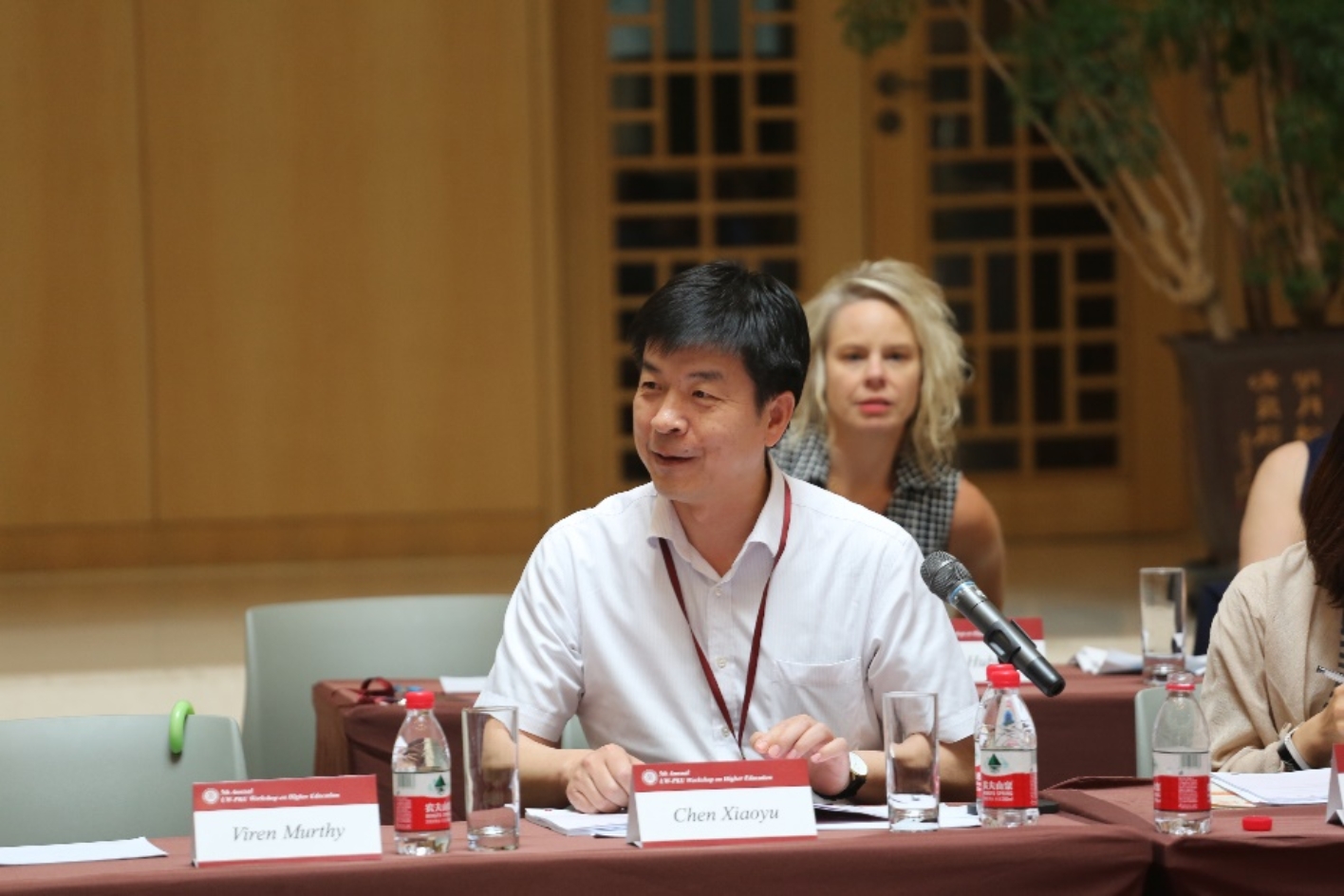 接着,会议主办方代表北京大学教育学院院长阎凤桥以及北京大学区域与国别研究院副院长昝涛分别致辞。阎凤桥回顾了中国对外开放和交流的历史,指出跨学科、跨学校、跨区域的合作与交流越来越重要,希望各方能够相互包容,增进理解,达到“美美与共,天下大同”合作与交流的境界。昝涛表示,中国和中国大学未来会继续加强国际合作,结交更多的国际朋友,希望中国学生能够多走出去了解世界,也希望更多的外国学生能够来到中国,了解中国、学习中国文化,各方携起手来共建一个更加美好的世界。