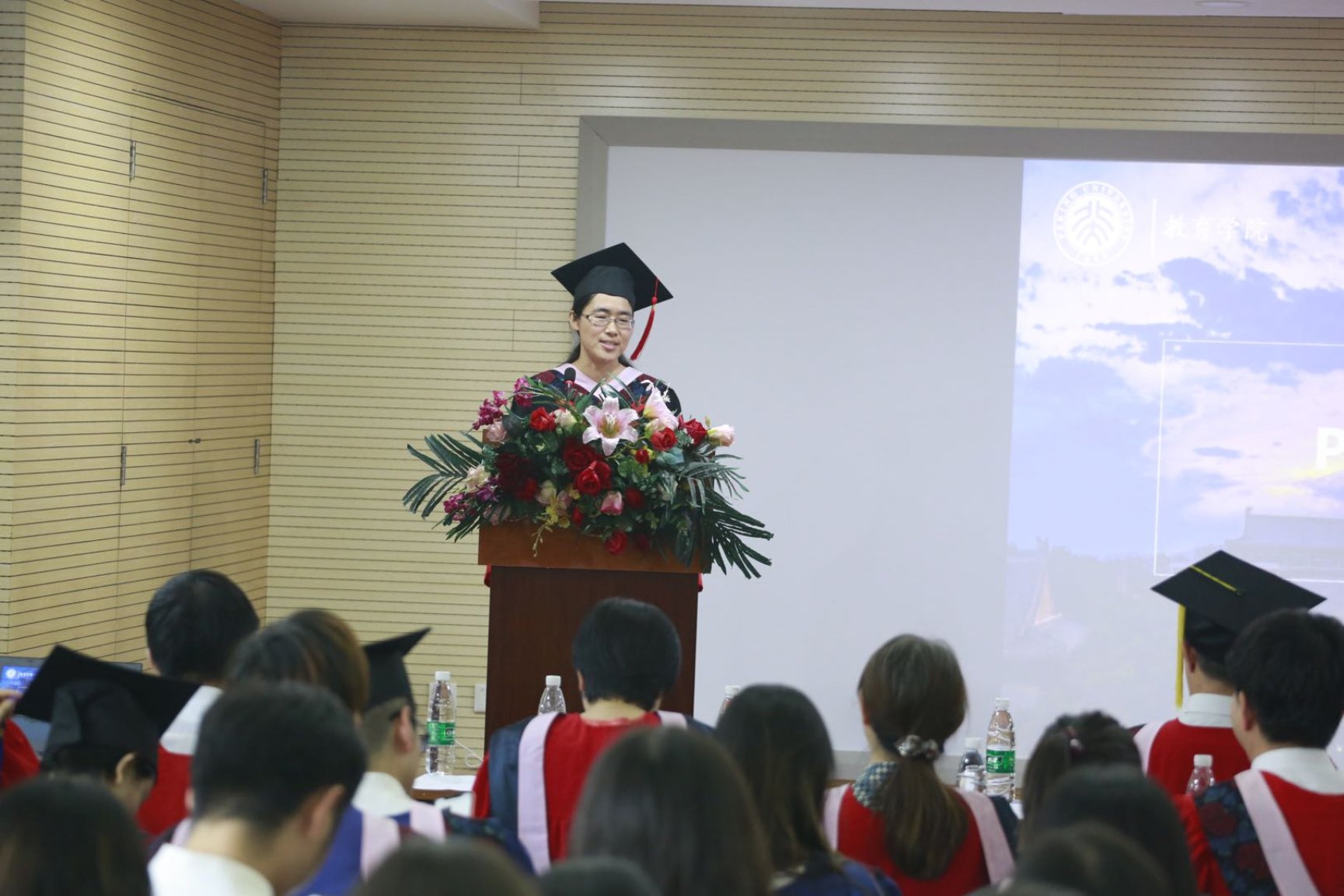 毕业生代表李晓丹、李兰、高喜军分别代表硕士生、博士生和Ed.D.毕业生做了发言。他们或以成长故事为线分享了毕业之际对教育目的的本质思考,即真正的教育是一种信仰;或讲述自己从小到大的求学经历、分享了自己对于感恩、坚持和相信教育的力量的理解和认识;或回顾了自己在北大辛苦并快乐的在职学习经历,真切地表达了对学院老师们的感恩之情。毕业生代表纷纷表示,在北大的学习是一次难忘的人生历练,教育学院老师们的言传身教时刻引领着毕业生,他们也一定会将北大教育人的精神继续传承下去!