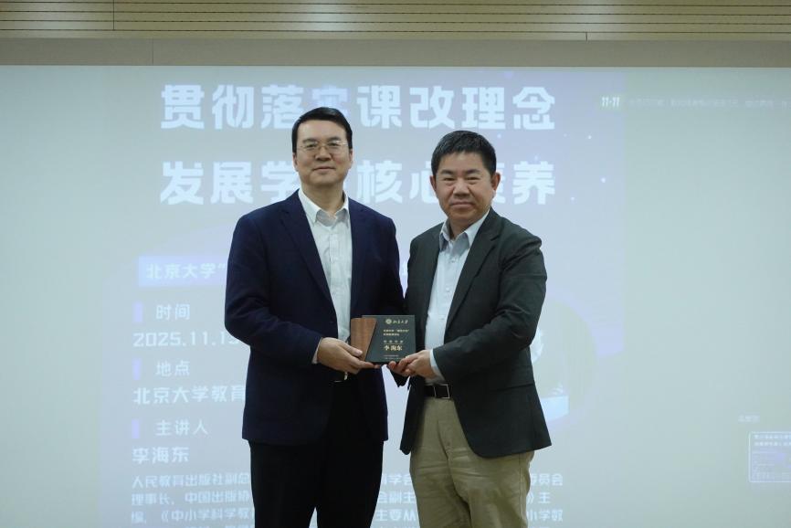 2025年11月13日,北京大学“国优计划”科学教育讲坛2025年第2期在教育学院112报告厅举行。人民教育出版社副总编辑、编审李海东受邀进行了讲座,主题为“贯彻落实课改理念,发展学生核心素养”。本次讲座由欧亿体育“国优计划”工作组副组长、助理教授郑蕾主持,教育学院副院长尚俊杰、两届“国优计划”研究生以及关注科学教育的校内外师生和媒体记者参与,共同探讨新时代基础教育课程改革下数学和理科教材的建设路径。