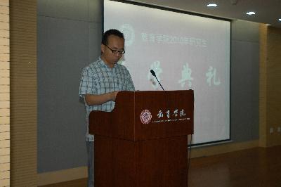 硕士新生代表毕鹏、孙钰,博士新生代表程飞分别在开学典礼上发言,他们表示要砥砺思想,继承北大勤奋严谨求实创新的学风,不断提高综合素质,做一名优秀的北大学子。教育学院2009级硕士研究生、院研究生会副主席原帅代表在校生对新生表示欢迎,并分享了她求学一年的经历与心得,勉励新生要“仰望星空,脚踏实地”。教师代表蒋凯副教授代表学院全体教师欢迎大家加入教育学院的大家庭,并希望大家做一名“德、智、体”全面发展的北大学生。